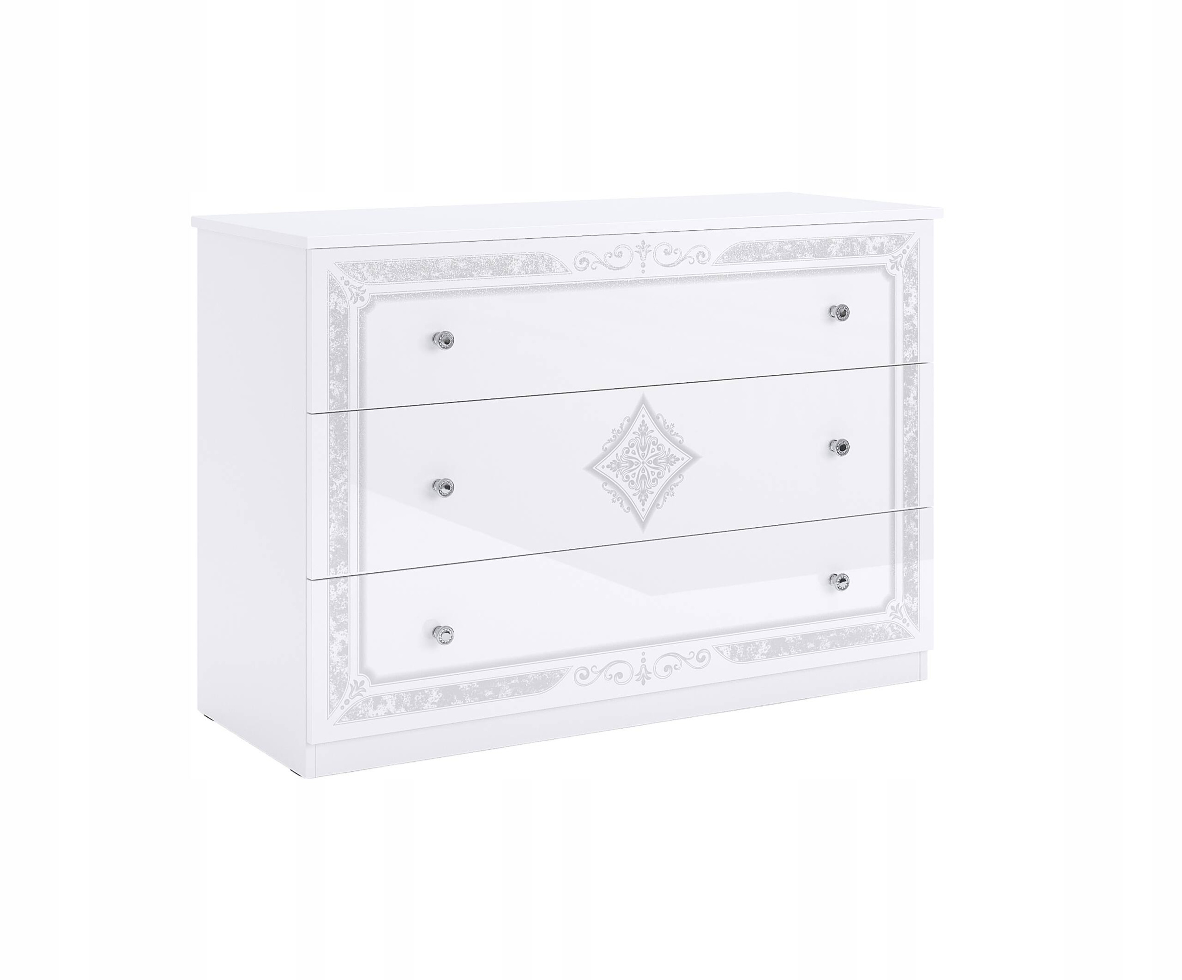 Luiza LZ-63-WB - Komoda 3 Szuflady Biały Mat Biały Połysk z Nadrukiem
