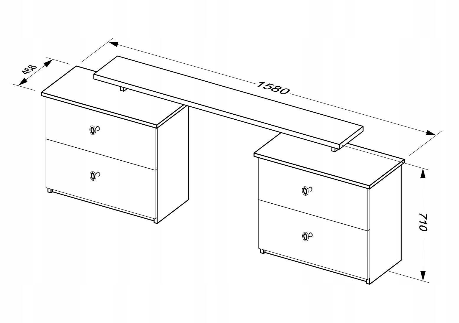 Solidna konstrukcja toaletki wykonana jest z wysokiej jakości płyt laminowanych, co gwarantuje trwałość i wytrzymałość na długie lata użytkowania. Blaty i fronty z wysokim połyskiem pokryte są trzywarstwową powłoką lakierniczą, co zapewnia idealnie błyszczącą powierzchnię, która nie żółknie z czasem. Dodatkowo, zastosowanie nowoczesnej technologii UV zapewnia, że każdy detal jest perfekcyjnie wykończony.