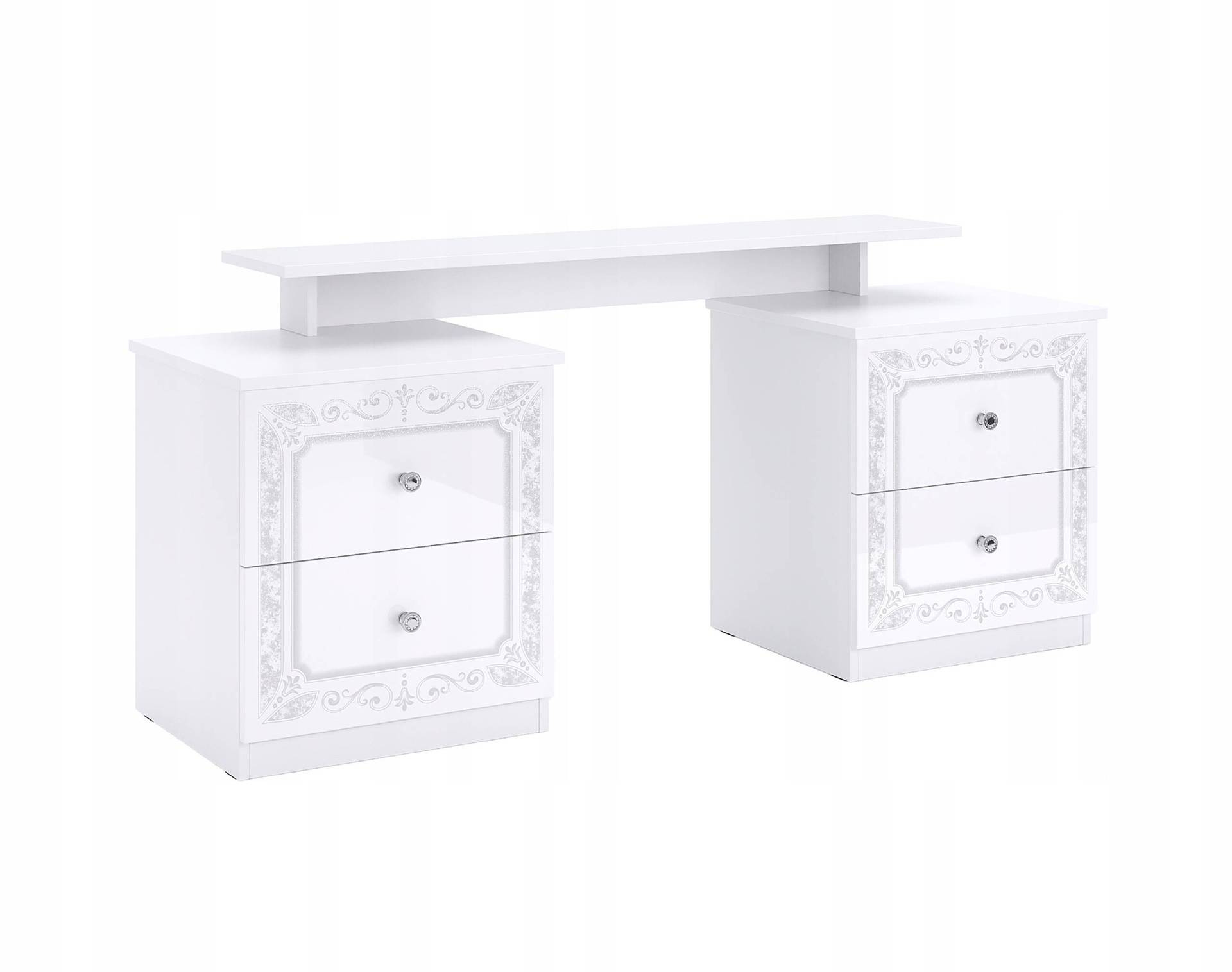 Luiza LZ-74-WB - Konsola Toaletka 4 Szuflady Biały Mat Biały Połysk z Nadrukiem