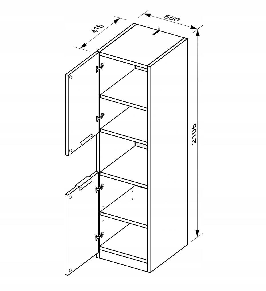 Model ten został zaprojektowany z myślą o maksymalnej wygodzie użytkowania. Znajdujące się w środku 5 praktycznych półek oferują mnóstwo miejsca na przechowywanie ubrań, butów, książek czy dekoracji, czyniąc szafę pojemną i kompaktową. Doskonała do małych i większych pomieszczeń, szafa Luna spełni wymagania nawet najbardziej wymagających użytkowników.