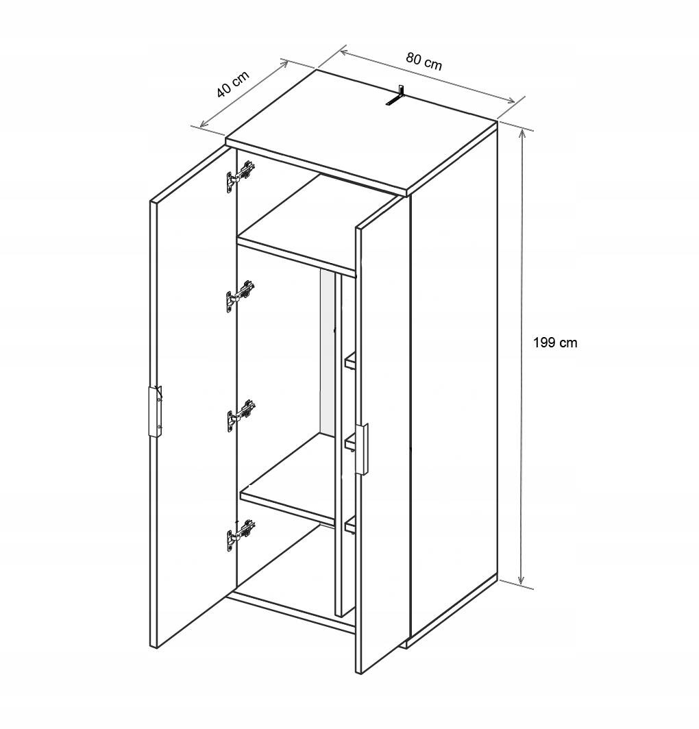 Szafa Luna to nie tylko estetyczny mebel, ale również znakomite rozwiązanie dla tych, którzy cenią sobie porządek i organizację. Lustro wkomponowane w jedne z drzwi dodaje przestrzeni głębi i świetnie sprawdza się przy porannym przygotowaniu do wyjścia. Szafa o wysokości 199 cm, szerokości 80 cm i głębokości 40 cm oferuje wystarczająco miejsca do przechowywania, niezależnie od tego, czy chcesz schować kurtki, płaszcze czy inne codzienne rzeczy.