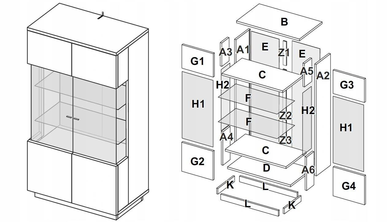 Zaprojektowana z wysokogatunkowych materiałów, witryna jest nie tylko estetyczna, ale i trwała. Laminowana płyta wiórowa, z której wykonano mebel, zapewnia odporność na codzienne użytkowanie, a szklane fronty dodają lekkości i nowoczesnego wyglądu. Dzięki zawiasom z cichym domykiem, użytkowanie witryny jest niezwykle komfortowe i ciche, co dodatkowo podkreśla jej wyrafinowany charakter.