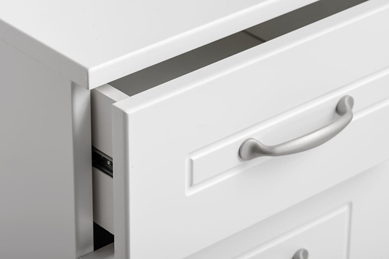 Meble z kolekcji Sophia White zawdzięczają swój nowoczesny styl przede wszystkim białym frontom i korpusom oraz ich matowemu wykończeniu. W kolekcji znajdziemy szafki o różnym przeznaczeniu i w wielu rozmiarach. Szafki wysoka, niska oraz wisząca posiadają półki oraz wygodne szuflady, które pomieszczą wszystkie niezbędne akcesoria łazienkowe. Ponadto do wyboru mamy dwie szafki pod umywalkę, do których przygotowano aż 8 różnych modeli umywalek, co ułatwi stworzyć wymarzoną aranżację. Fronty szafek zdobią proste żłobienia, a także srebrne metalowe uchwyty. Uwieńczeniem serii są dwa lustra o szerokości 60 i 80 cm. Estetyczny wygląd mebli łazienkowych z kolekcji Sophia White umożliwi urządzenie modnego i oryginalnego wnętrza.