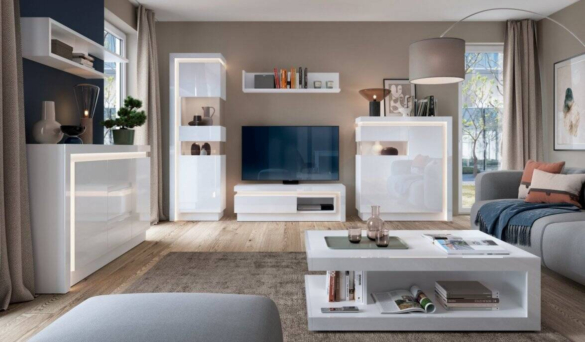 Kolekcja LYON biały to linia mebli, gdzie każdy element zasługuje na miano dzieła sztuki. Półka LYOP02, dzięki swojej niespotykanej formie, idealnie wpisuje się w kanon nowoczesności, stanowiąc niebanalny dodatek, który wzbogaca każde wnętrze. Czy to obok komody, nad witryną, czy w towarzystwie komody RTV – wszędzie prezentuje się zjawiskowo i staje się centralnym punktem aranżacyjnym.