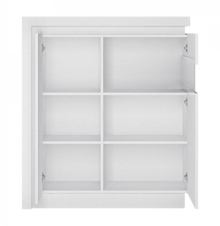 Prezentujemy unikatową i stylową witrynę niską Lyon Biały LYOV04P, która w fantastyczny sposób połączyła w sobie funkcję przechowywania z możliwością eksponowania Twoich najcenniejszych przedmiotów. Jest to mebel dla osób ceniących minimalizm oraz nowoczesne rozwiązania w swoim wnętrzarskim designie. Oryginalność i niebanalny charakter tej witryny sprawią, że stanie się ona prawdziwą perłą wśród domowych mebli.