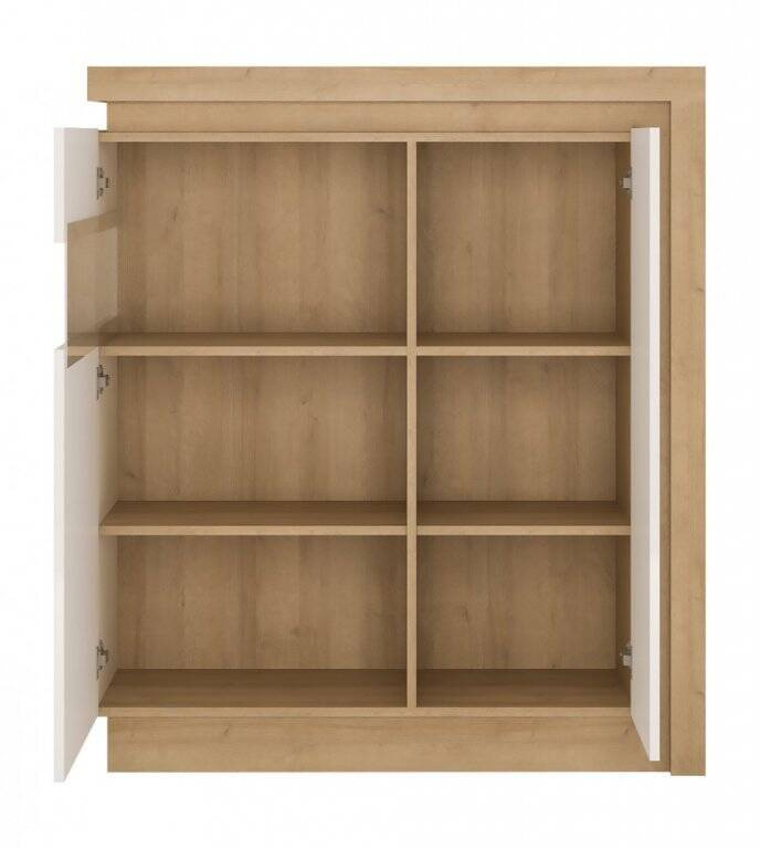 Odkryj pozłacany akcent nowoczesności w swoim domu z "Lyon LYOV04L – Witryna Niska 2-drzwiowa Dąb Riviera Jasna/Biała". Prezentując się elegancją prostych linii, to mebel w niespotykanej harmonii ciepłego dębu Riviera i niewinnej bieli. Odpowiednio zamierzone proporcje szerokości 107,5 cm, wysokości 123,6 cm oraz głębokości 42 cm, czynią tę witrynę doskonałą przestrzenią do eksponowania wyjątkowych drobiazgów i zbiór przedmiotów bliskich Twojemu sercu.
