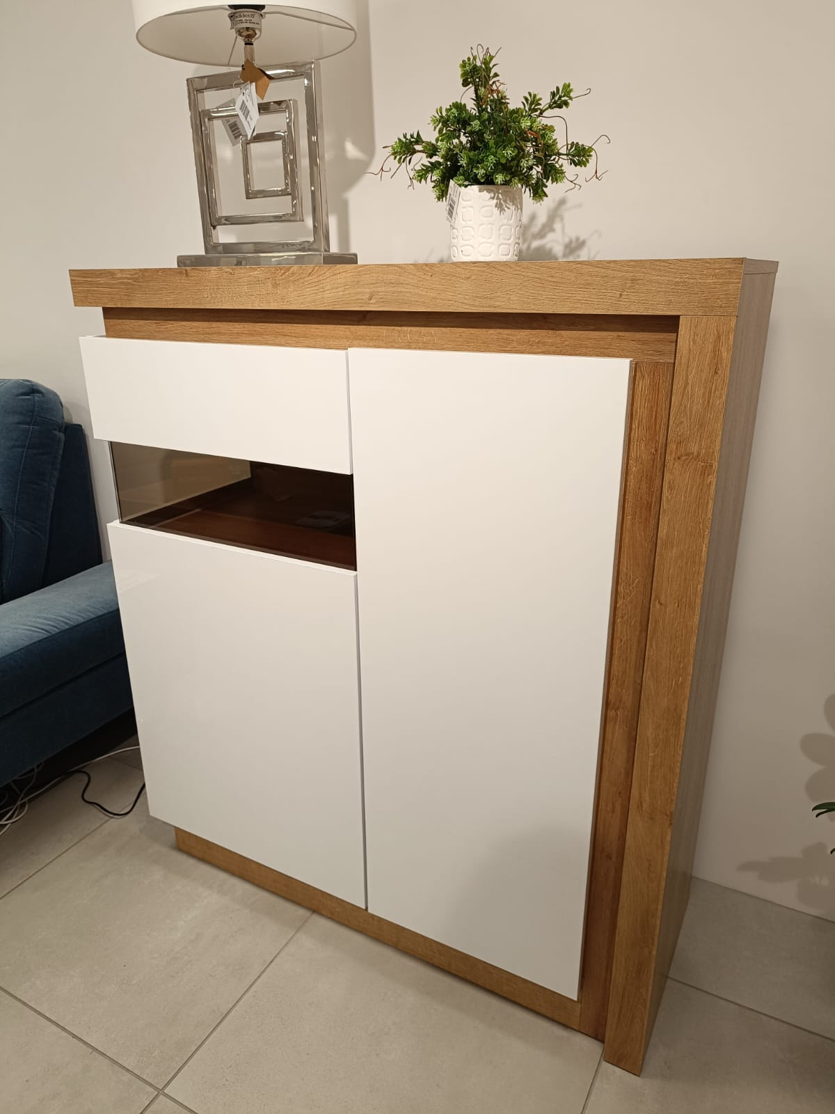 Szczególną rolę odgrywa w niej zintegrowane oświetlenie LED Flash, które wyróżnia witrynę na tle klasycznych mebli dzięki asymetrycznemu podświetleniu boku oraz wieńca górnego. Ciepłe barwy światła nie tylko uwydatniają estetykę dębu Riviera, ale również tworzą zachwycający klimat w każdym pomieszczeniu. Istnieje możliwość personalizacji poprzez zakupienie dodatkowego, dotykowego włącznika oświetlenia za sugerowaną cenę 61 zł, który sprawi, że obsługa mebla stanie się jeszcze bardziej intuicyjna i wygodna.
