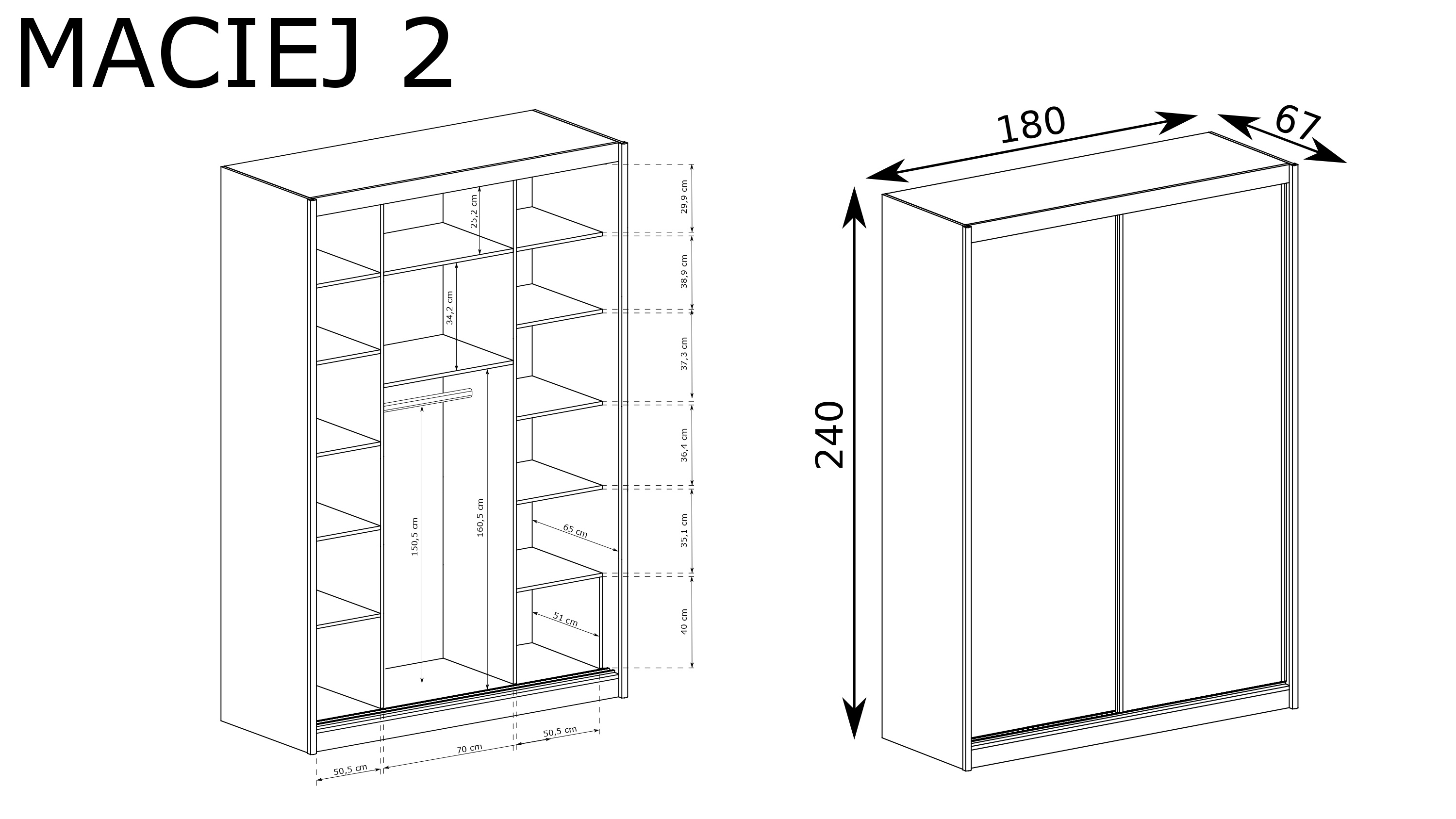 - Szafa MACIEJ II łączy nowoczesny design z funkcjonalnością. Drzwi przesuwne oszczędzają miejsce, a liczne półki i szuflady ułatwiają organizację. Wykonana z solidnej płyty laminowanej w eleganckim kolorze kraft biały, idealnie wpasuje się w każdy dom.