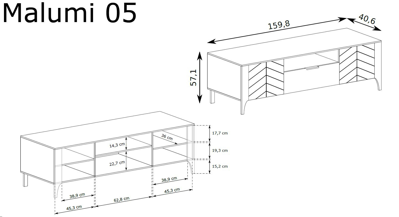 Szafka RTV MALUMI-5 to nie tylko mebel – to stylowa ozdoba Twojego wnętrza, która pozwoli na zachowanie porządku i organizacji. Oferując elegancki design połączony z nowoczesnymi rozwiązaniami, z pewnością stanie się centralnym punktem każdej przestrzeni. Zamów już teraz i przekształć swój salon w miejsce, które zachwyci Ciebie i Twoich gości!