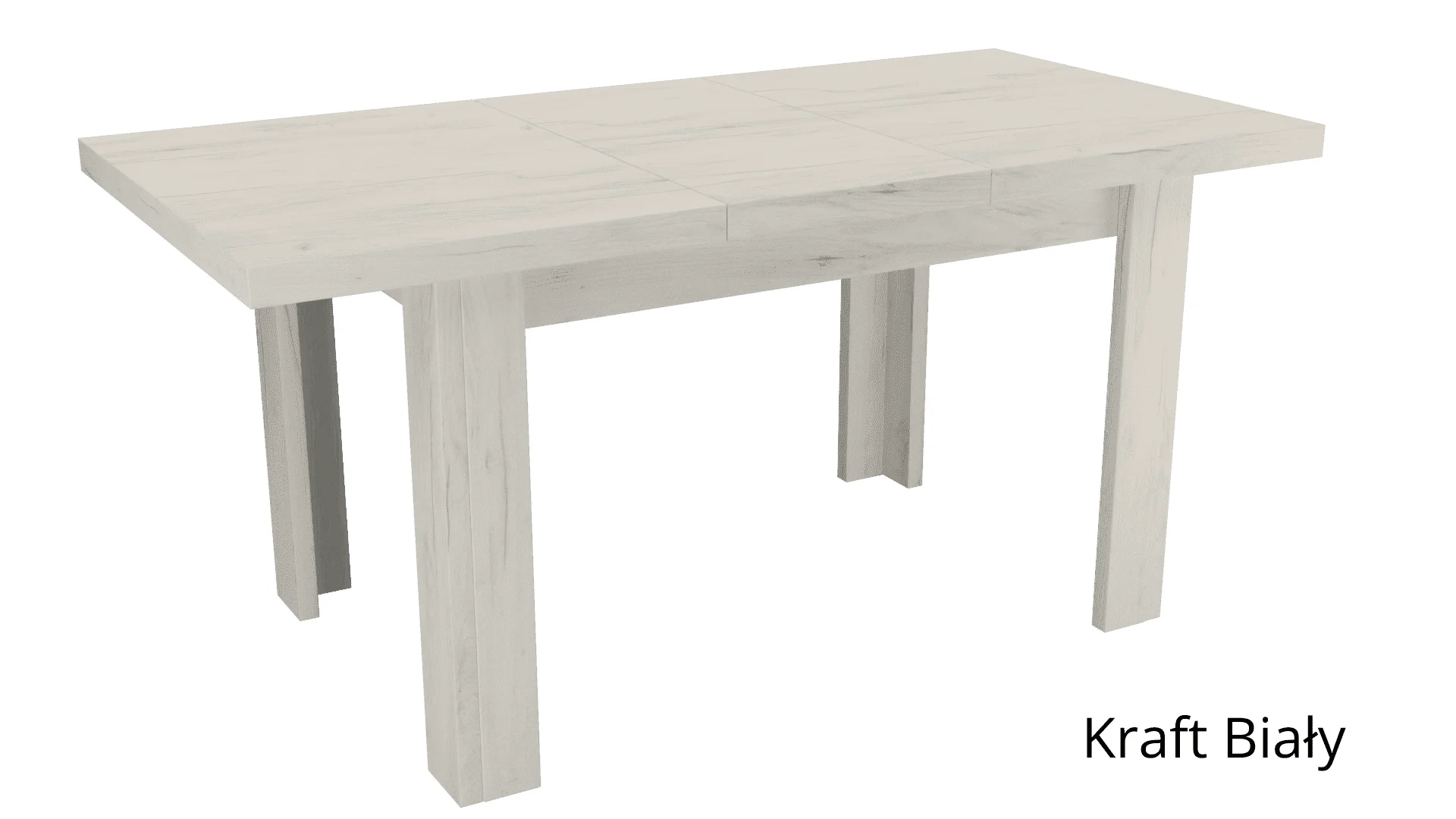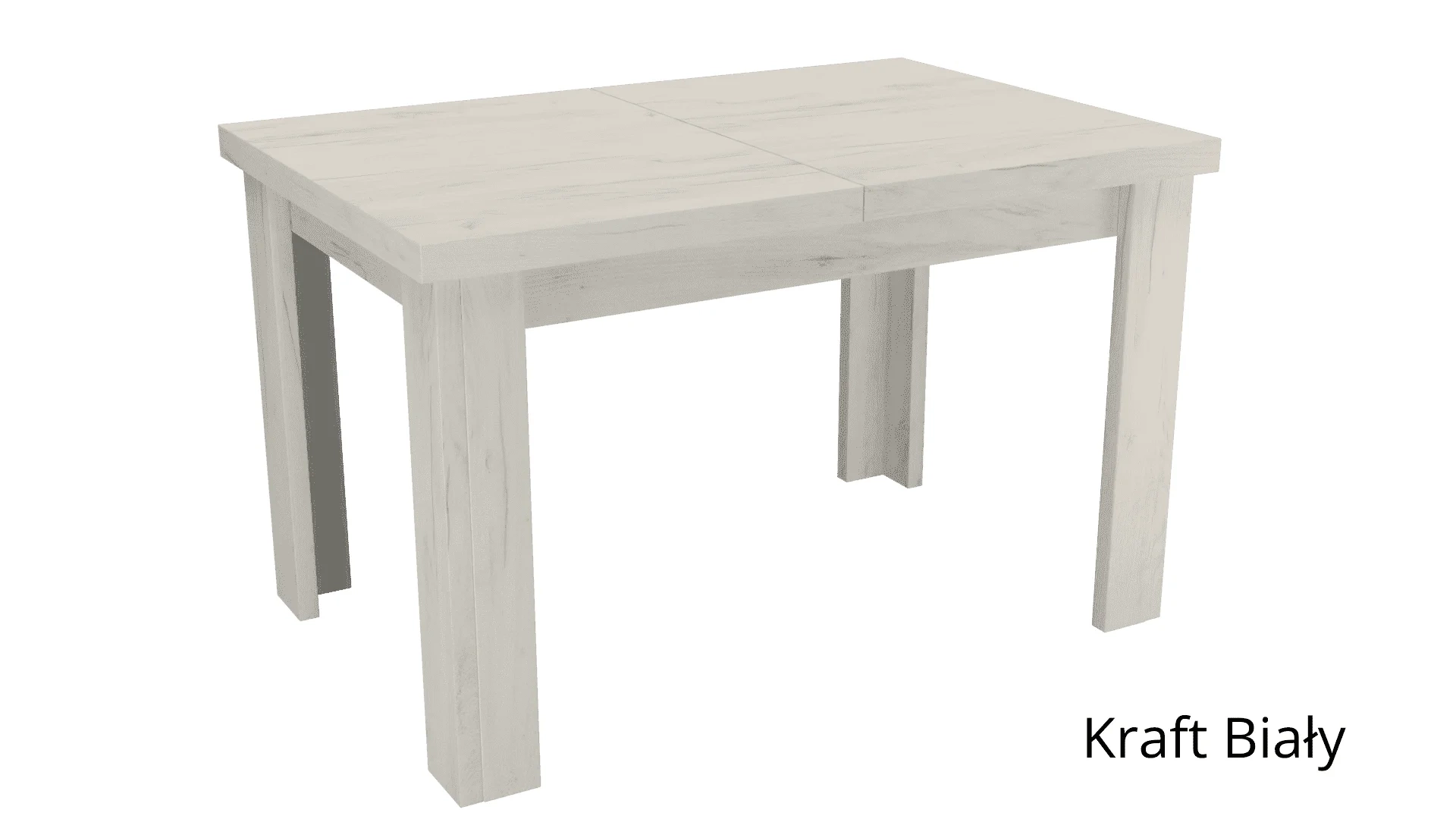 Rozkładany stół jadalniany w kolorze Kraft Biały to idealne połączenie prostoty i funkcjonalności. Wykonany z płyty laminowanej, jego minimalistyczny design doskonale wpasuje się w nowoczesne wnętrza. Stwórz przestrzeń do wspólnych chwil!
