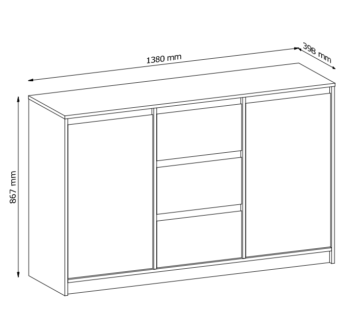 Jej wymiary (szerokość 138 cm, wysokość 87 cm i głębokość 40 cm) sprawiają, że komoda doskonale sprawdzi się zarówno w niewielkich, jak i większych przestrzeniach. Dzięki zgrabnej sylwetce i harmonijnym proporcjom, można ją łatwo wkomponować w istniejące aranżacje, tworząc przy tym estetyczny i funkcjonalny punkt centralny w Twoim wnętrzu.
