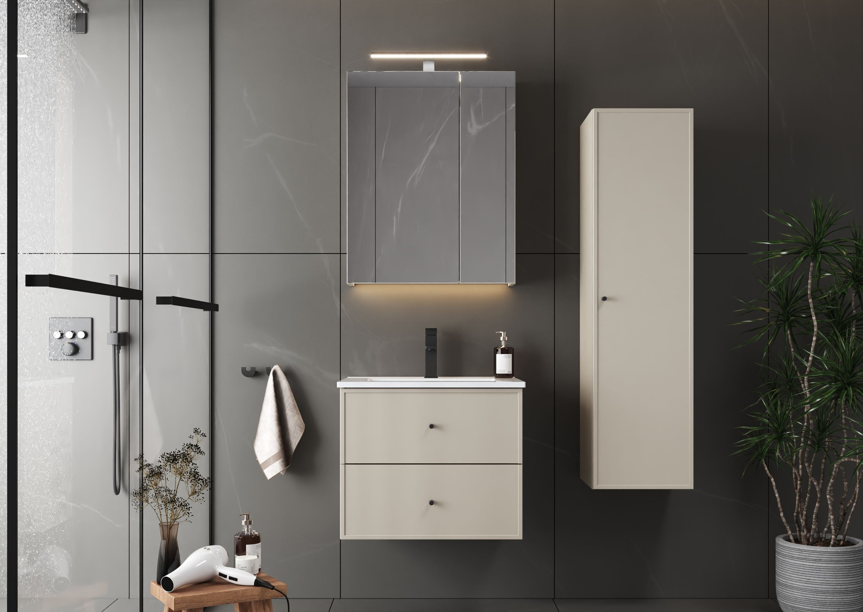 - Słupek Wysoki MARCO-03 w kolorze Kaszmir mat to elegancka propozycja do każdego wnętrza. Wykonany z trwałego MDF i laminowanej płyty, z cichym domykaniem drzwi. Idealny do powieszenia na ścianie, doda stylu i funkcjonalności Twojemu pomieszczeniu!