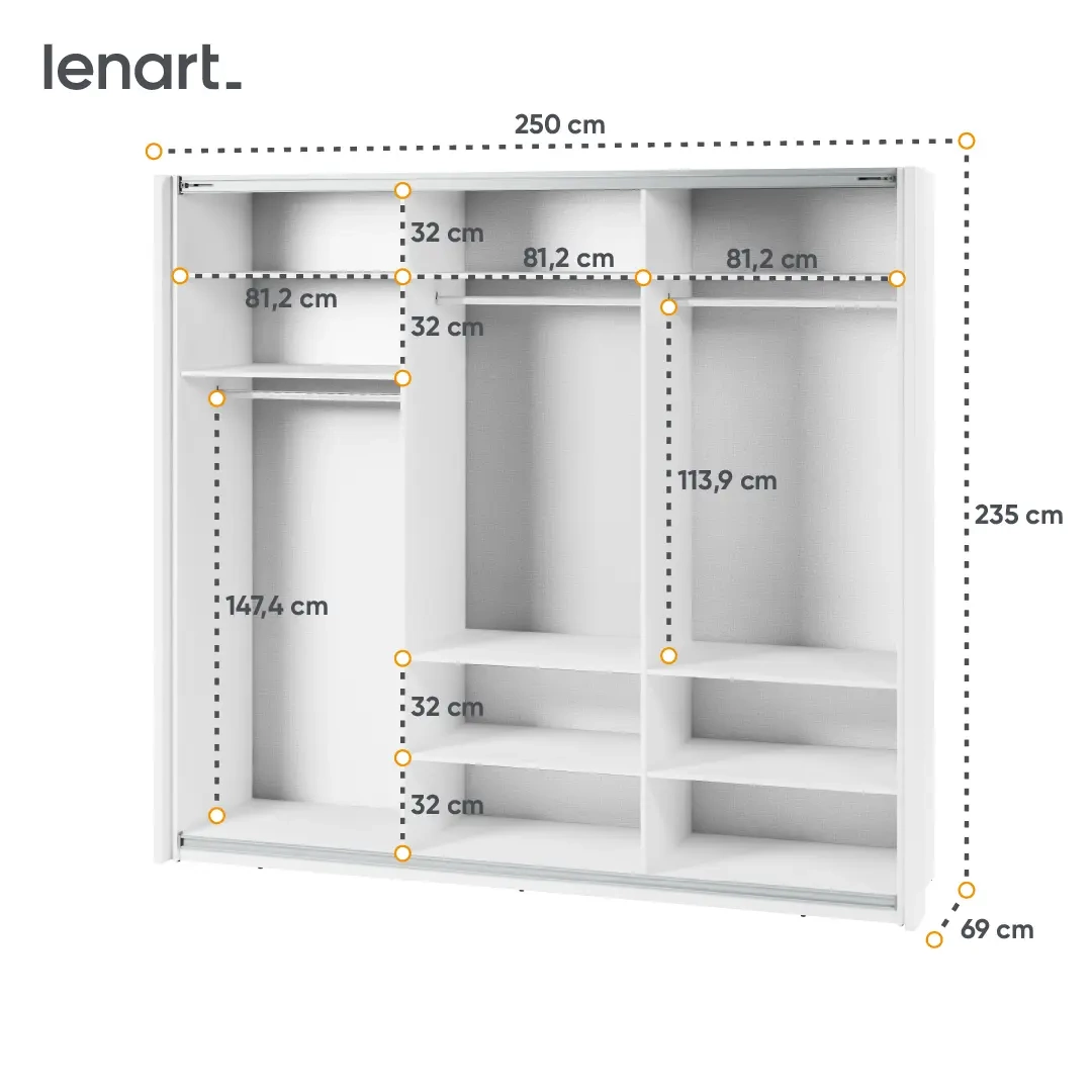 MAXI MX-06 - Szafa 3-drzwiowa z Lustrem 250 cm Biała