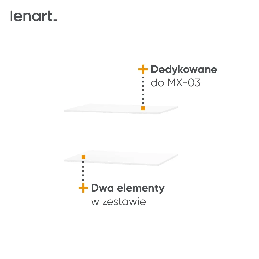 Opcjonalne półki (2 szt.) dedykowane do szafy MX-03. To rozwiązanie dla osób, które mają dużo ubrań i potrzebują dodatkowej przestrzeni do ich przechowywania.