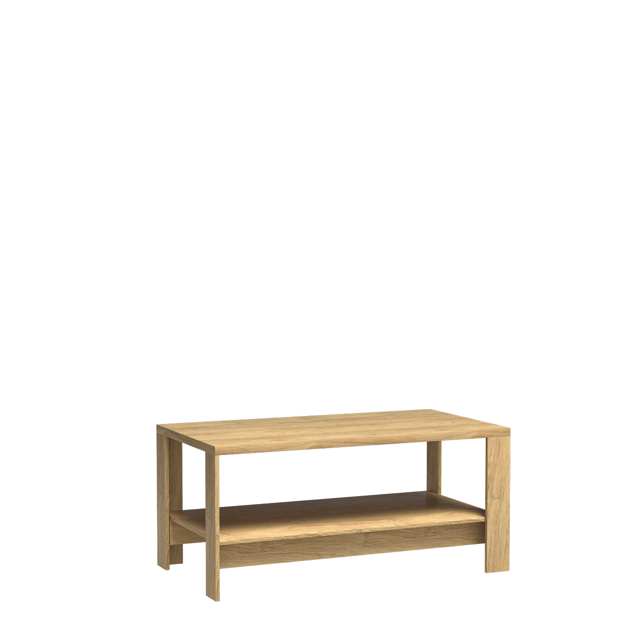 Stolik kawowy Mediolan-18 to idealny dodatek do salonu. Wykonany z wytrzymałej płyty laminowanej, zachwyca jasnym, nowoczesnym designem. Dzięki szerokiej półce na książki i drobiazgi, umożliwia wygodne relaksowanie się przy ulubionej kawie. Montaż DIY!