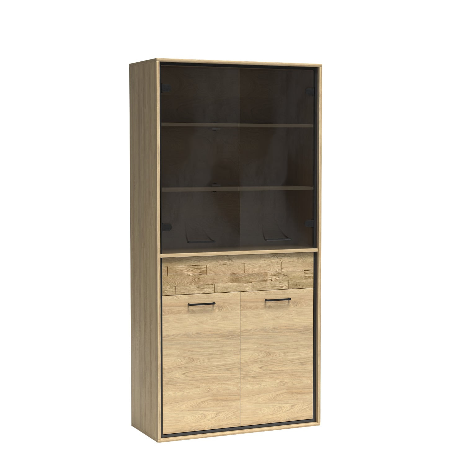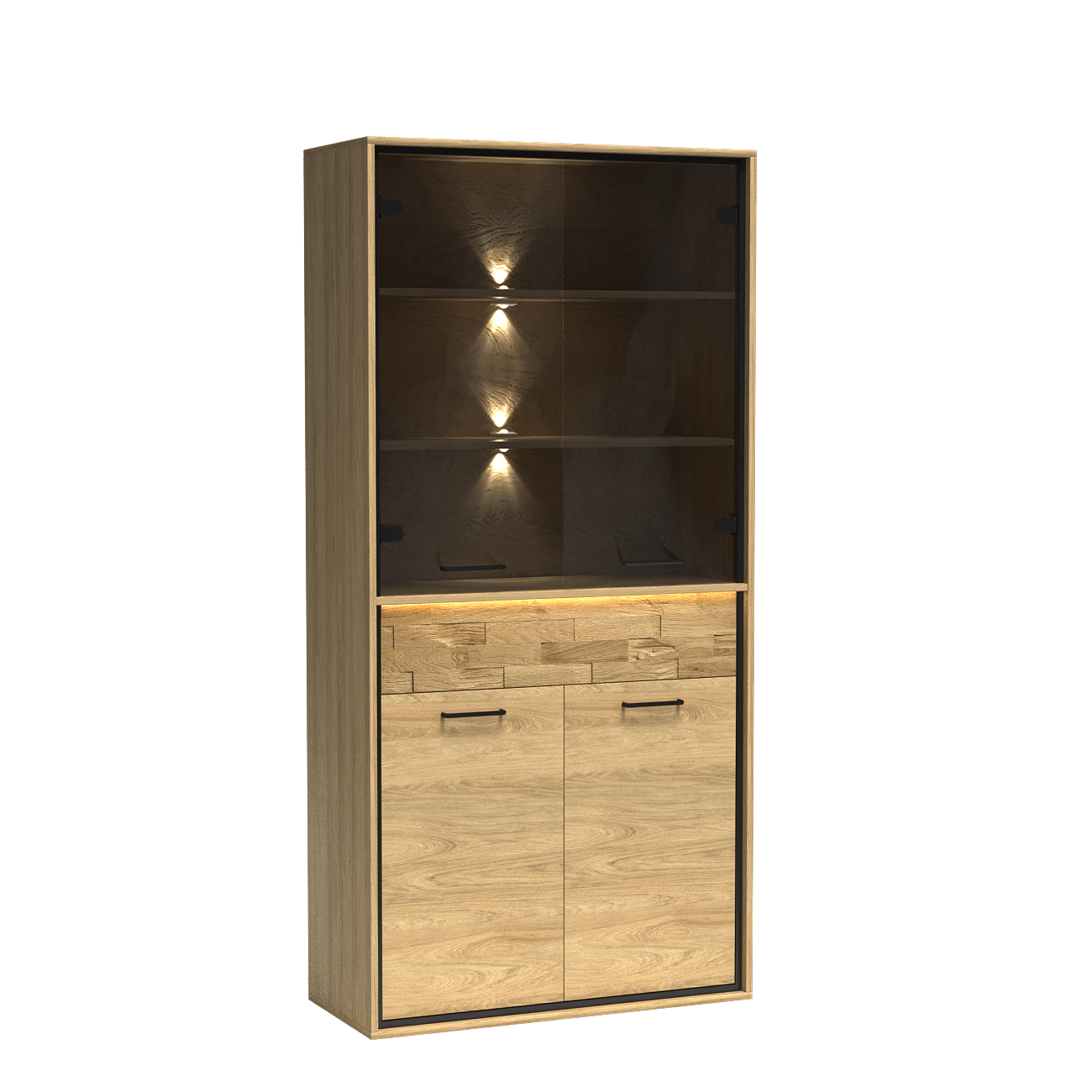 Zdecyduj się na witrynę z kolekcji MEDIOLAN, by wzbogacić swoje wnętrze o elegancję i funkcjonalność. W zestawieniu z dekoracyjną, dębową deską na froncie szuflady oraz oświetleniem LED półek szklanych, stworzysz przytulną i stylową przestrzeń. Witryna MEDIOLAN-3 to więcej niż tylko mebel - to prawdziwa ozdoba Twojego salonu, jadalni czy gabinetu.