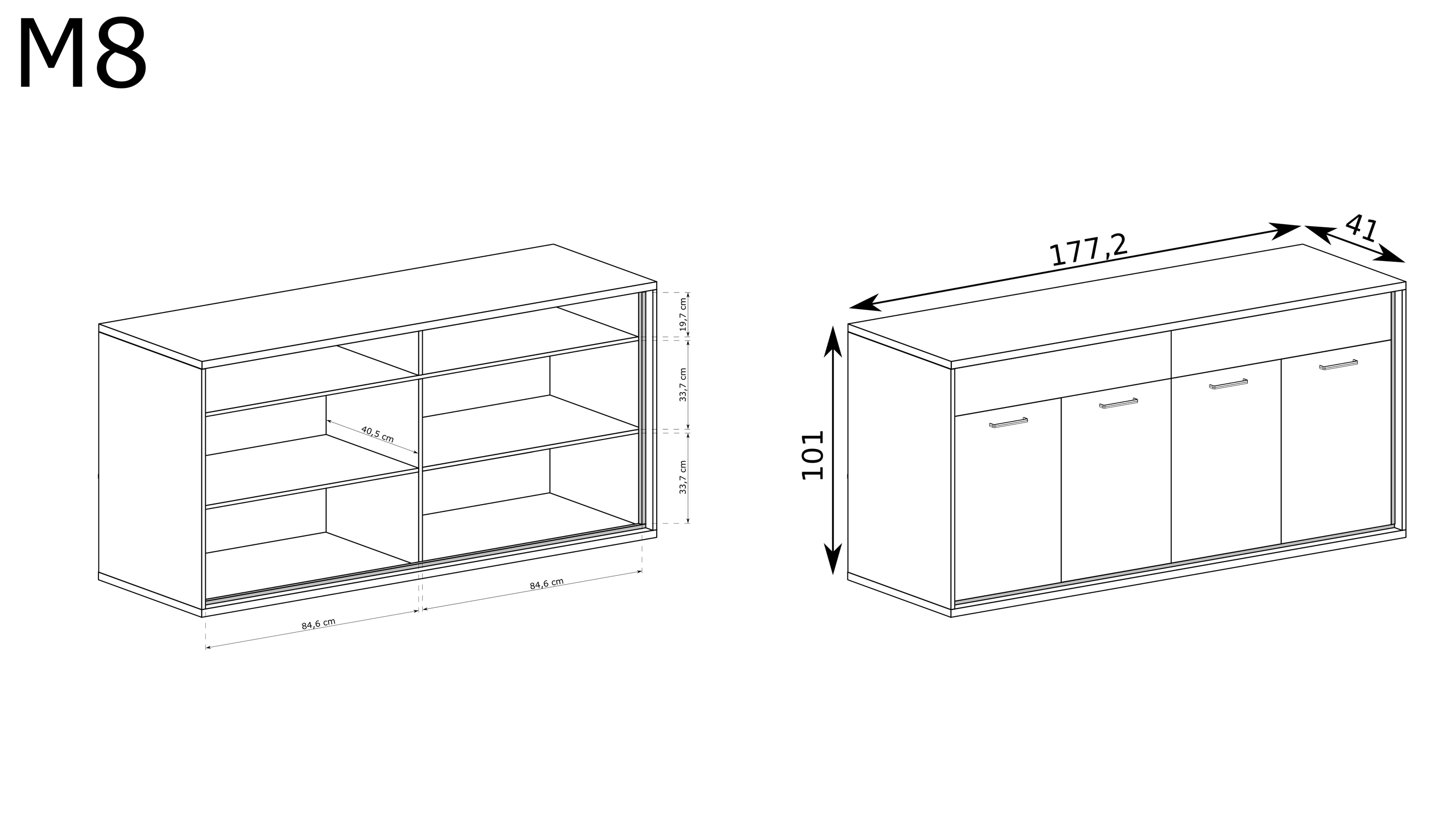 Nie czekaj dłużej i zamów już dziś komodę MEDIOLAN-8! Oferując zarówno styl, jak i pojemność, ten mebel z pewnością stanie się integralna częścią Twojego wnętrza. To idealny wybór dla tych, którzy pragną stworzyć przestrzeń łączącą wygodę z elegancją.