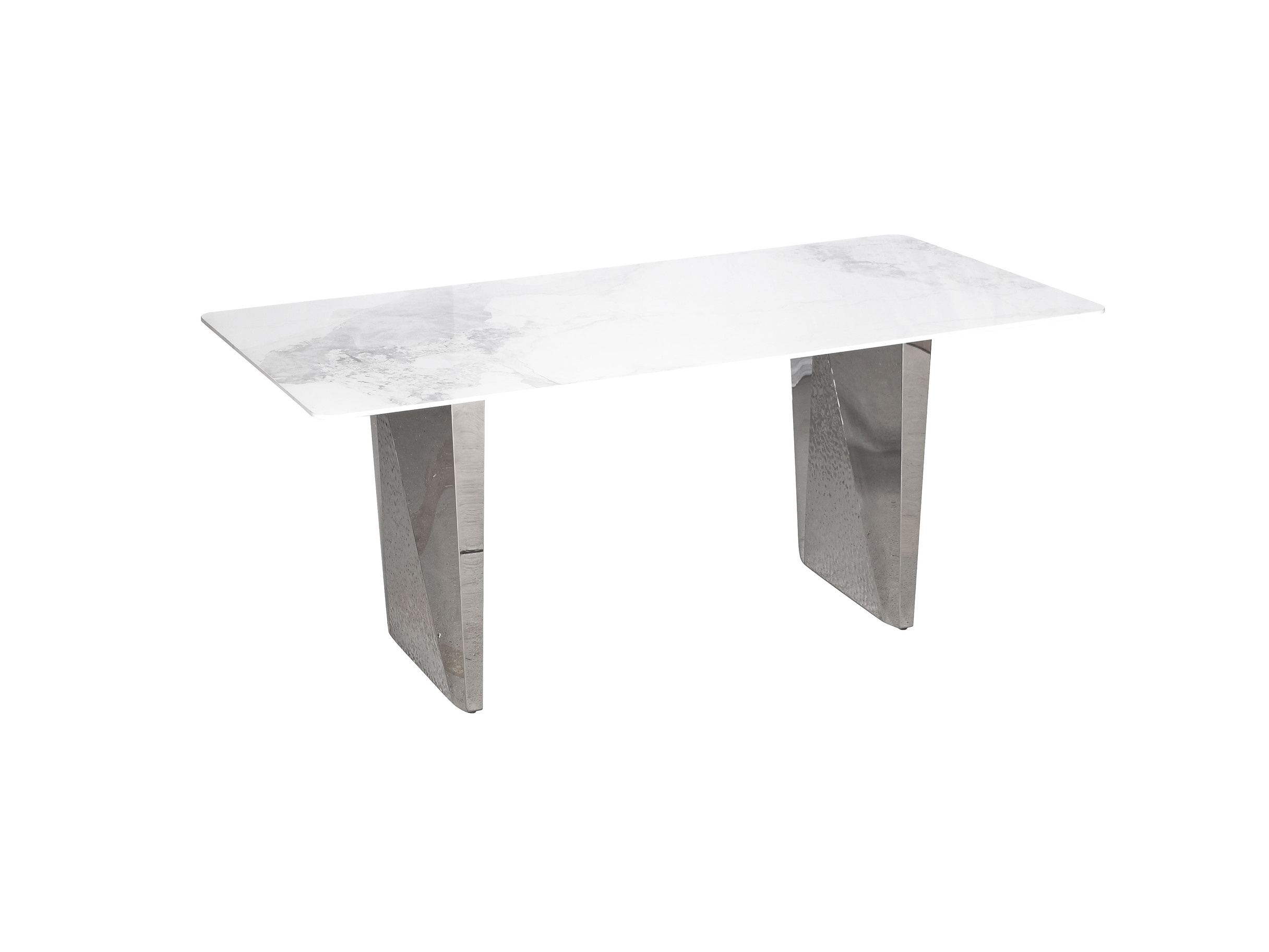 Stół Modig M33 to elegancki wybór do nowoczesnego wnętrza. Jego stalowa podstawa i dekoracyjnie młotkowane nogi w kolorze srebrnym doskonale wspierają blatu imitującego marmur w klasycznym białym odcieniu.