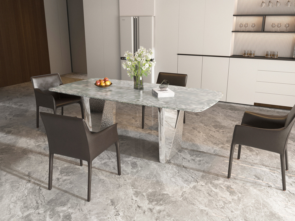 Opisując stół Modig M33, nie można pominąć jego estetyki i dbałości o detale. Geometryczne nogi w unikalnym designie — zarówno gładkie, jak i młotkowane — nadają mu wyrazisty charakter, który potrafi ożywić przestrzeń. Chromowane wykończenie nóg sprawia, że stół wygląda na luksusowy i nowoczesny, idealny do eleganckich spotkań z rodziną i przyjaciółmi. Jego ponadczasowa kolorystyka sprawia, że będzie doskonale pasował do różnych stylów wnętrz, od skandynawskiego po industrialny.