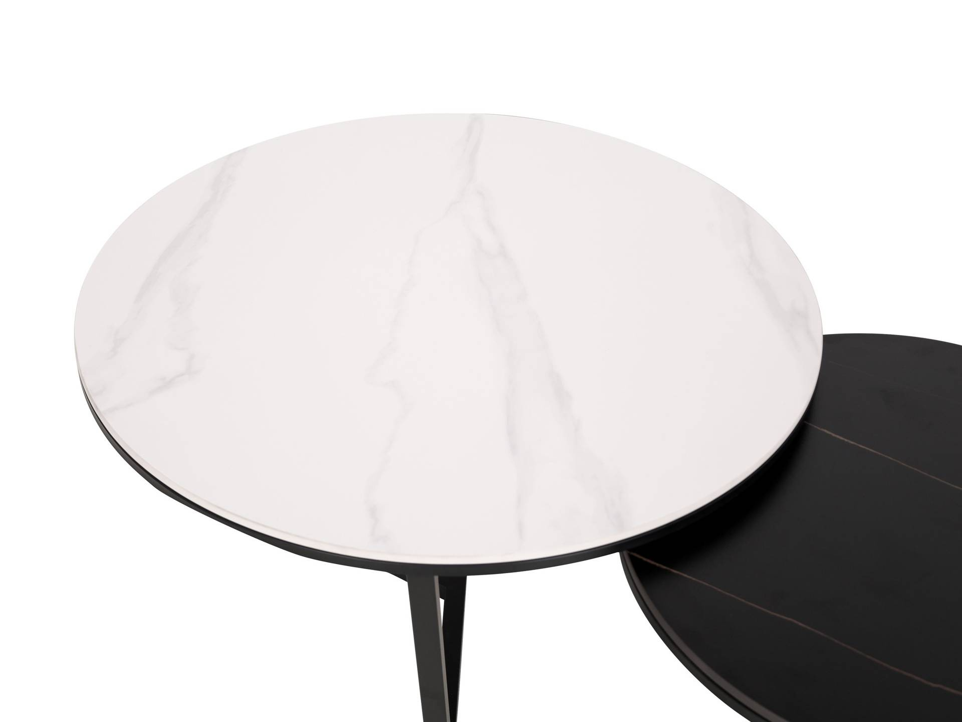 Zestaw stolików kawowych Modig M66 marki Livinhill łączy nowoczesny design z funkcjonalnością. Czarna stalowa podstawa i okrągły blat imitujący marmur w eleganckim białym i czarnym kolorze dodają szyku każdemu wnętrzu.