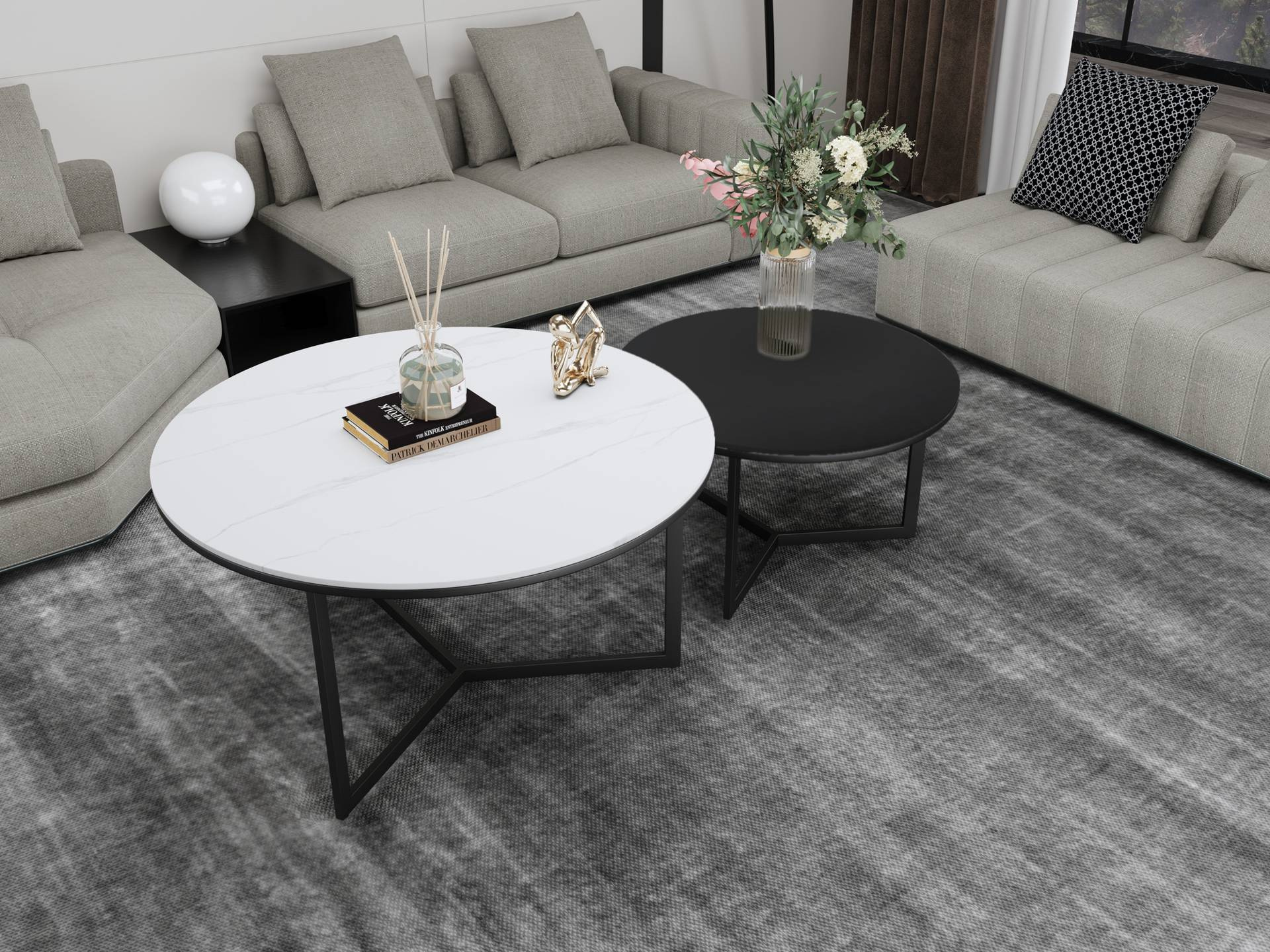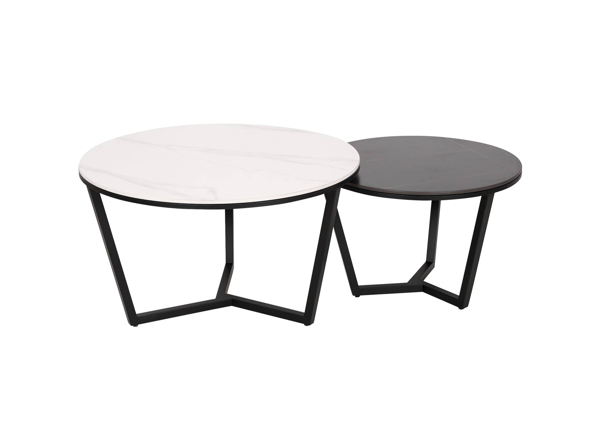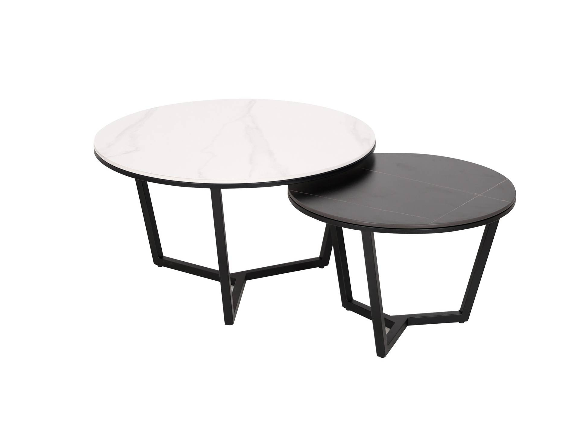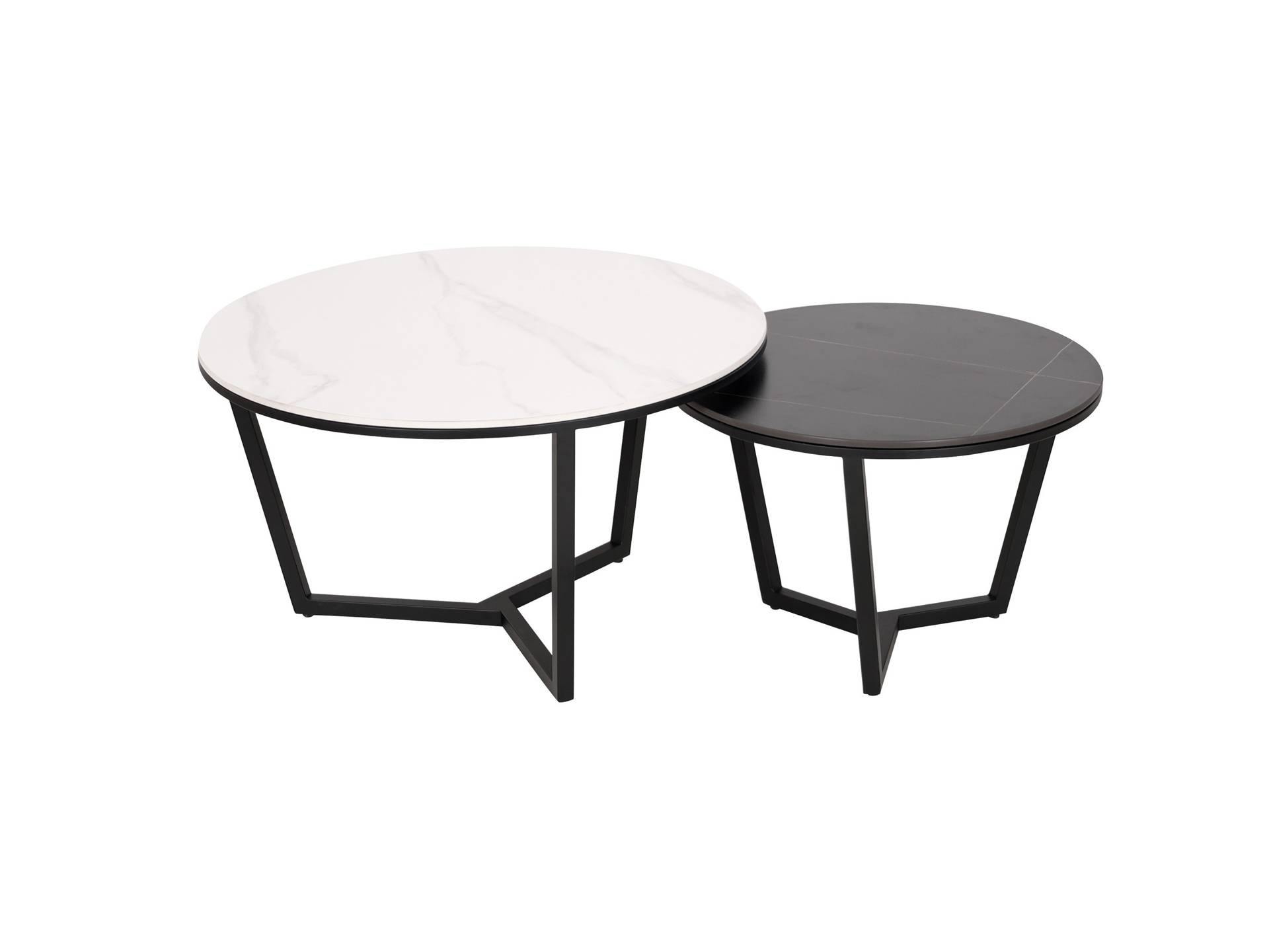 - Zestaw stolików kawowych Modig M66 marki Livinhill łączy nowoczesny design z funkcjonalnością. Czarna stalowa podstawa i okrągły blat imitujący marmur w eleganckim białym i czarnym kolorze dodają szyku każdemu wnętrzu.