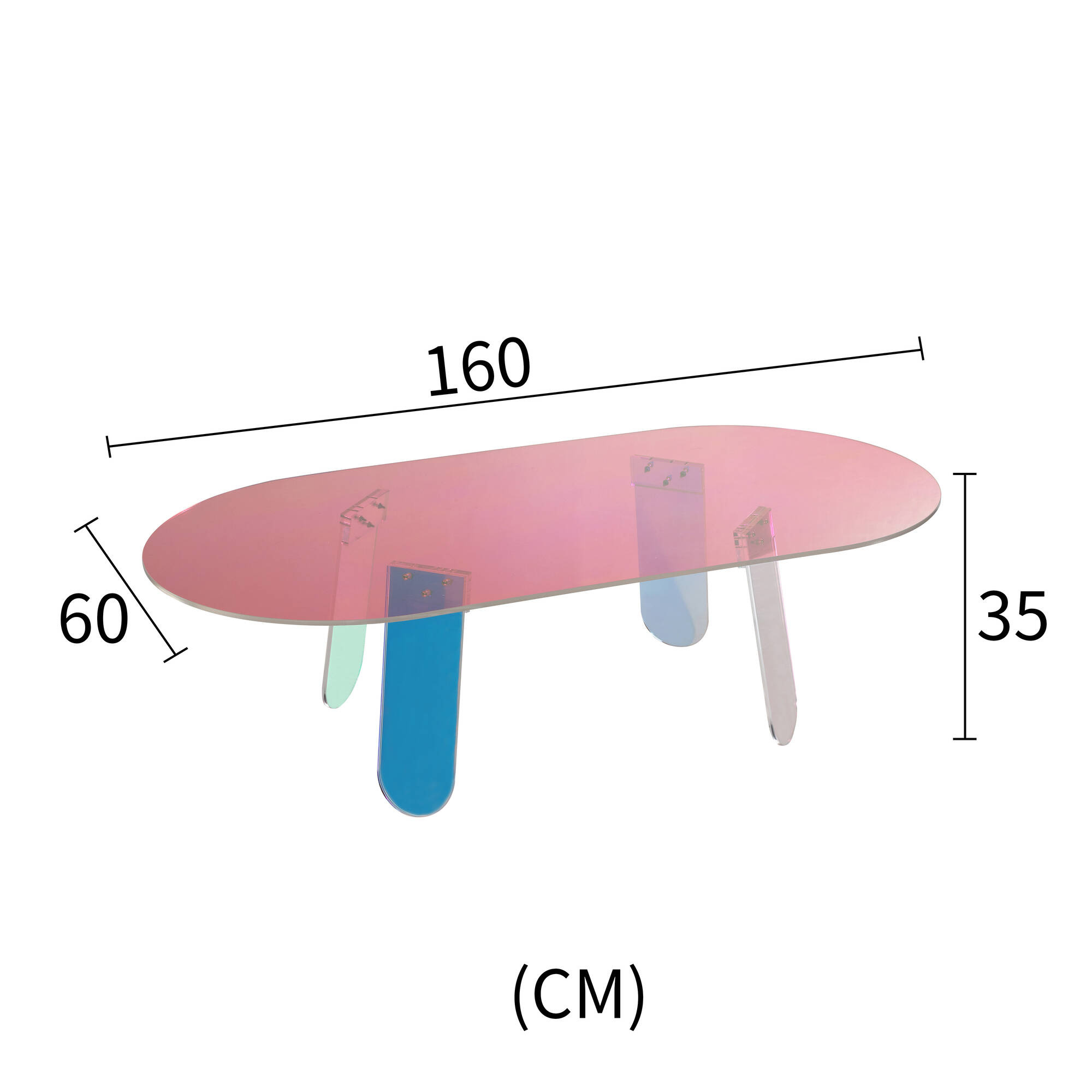 - Oryginalny stolik został wykonany z przezroczystego, opalizującego akrylu. W zależności od padania światła widoczne są różne ciekawe efekty kolorystyczne. Prosta forma i lekka konstrukcja sprawią, iż stolik pasuje do wielu wnętrz.
