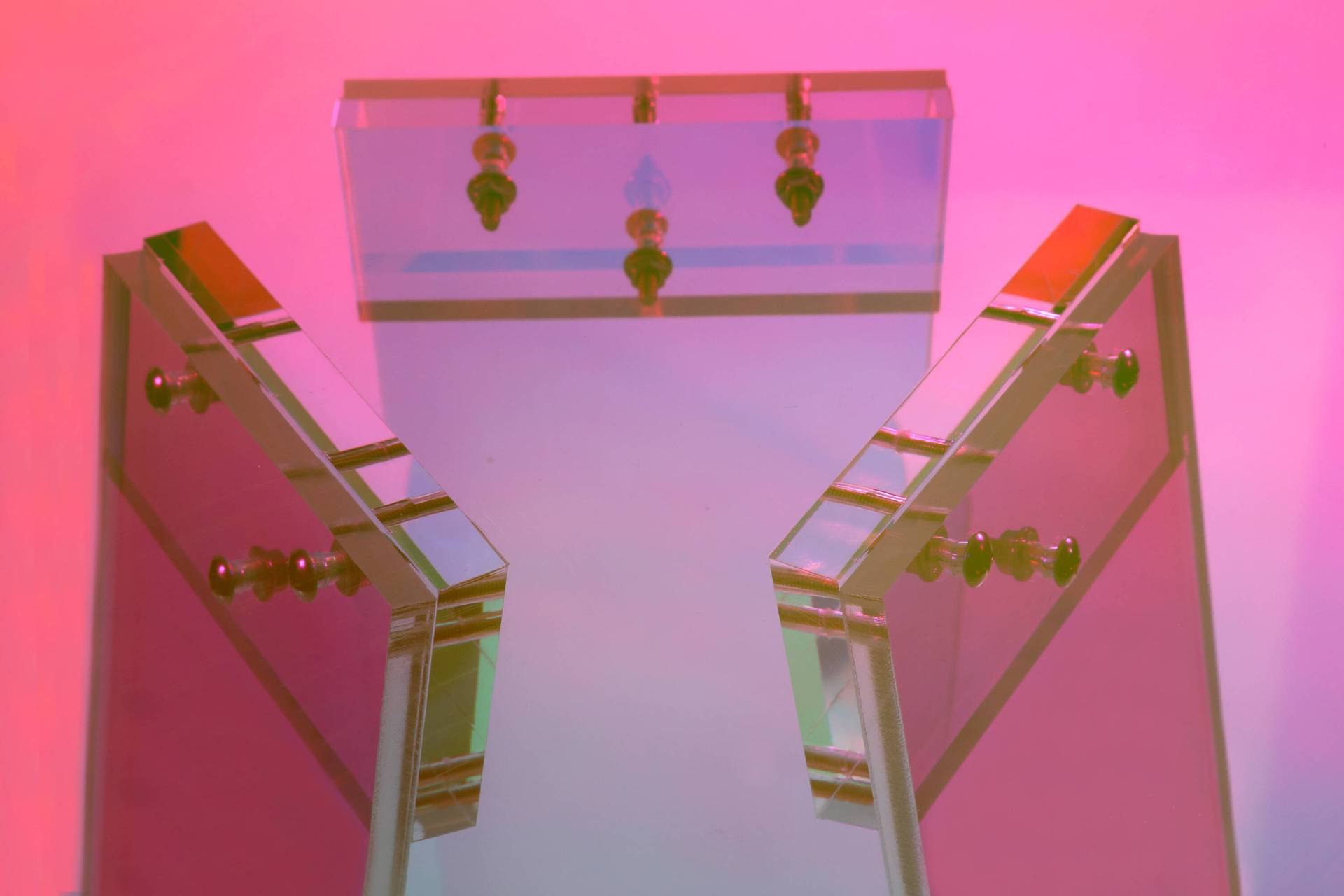 - Oryginalny stolik wykonany z przezroczystego akrylu. W zależności od padania światła widoczne są różne efekty kolorystyczne. Prosty kształt i lekka konstrukcja sprawią, iż stolik można dopasować do każdego wnętrza.
