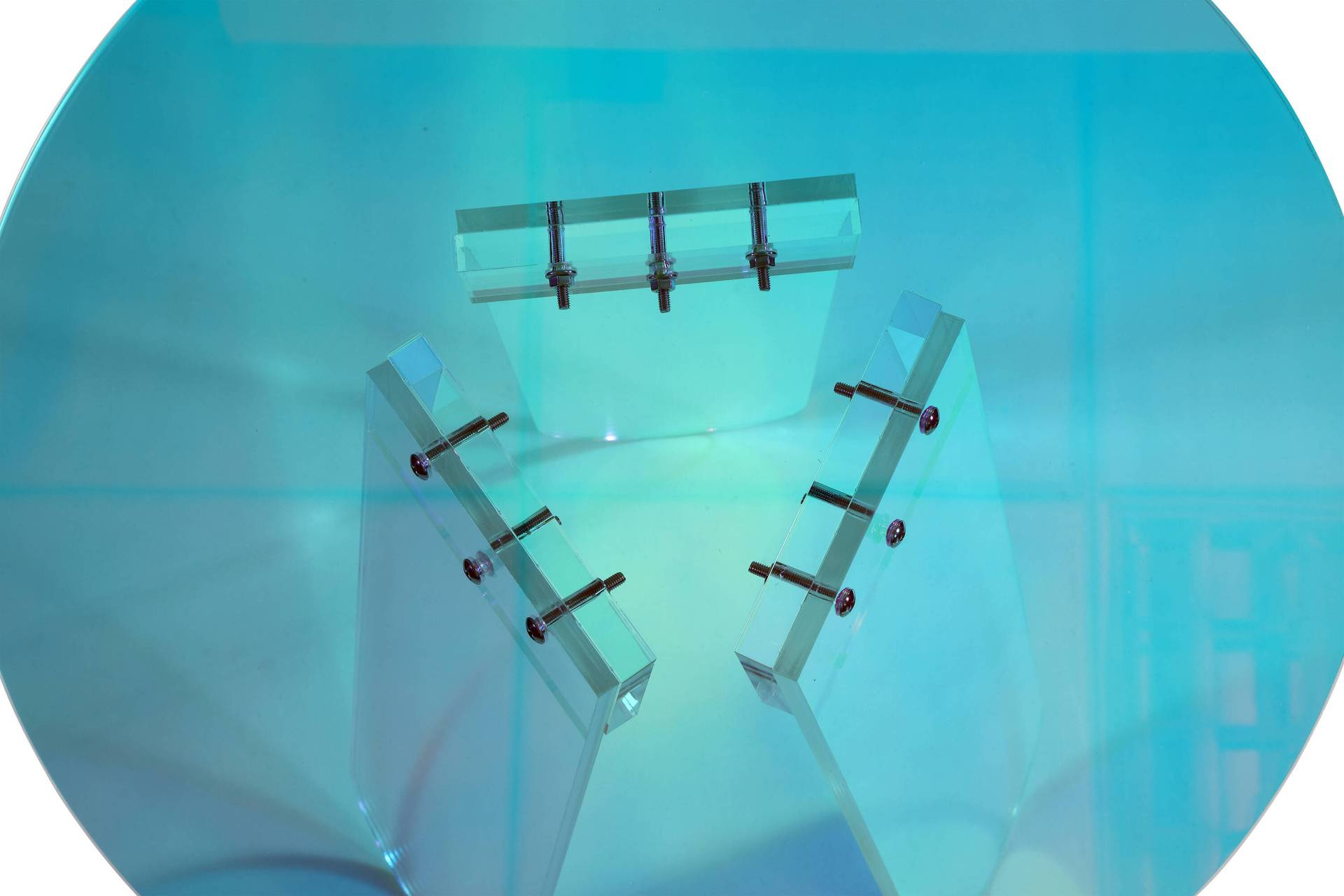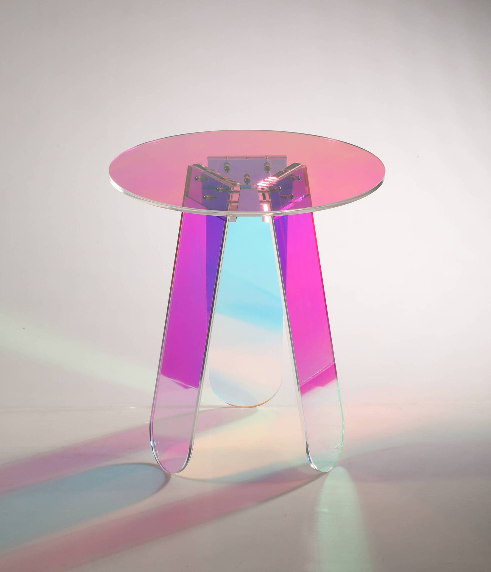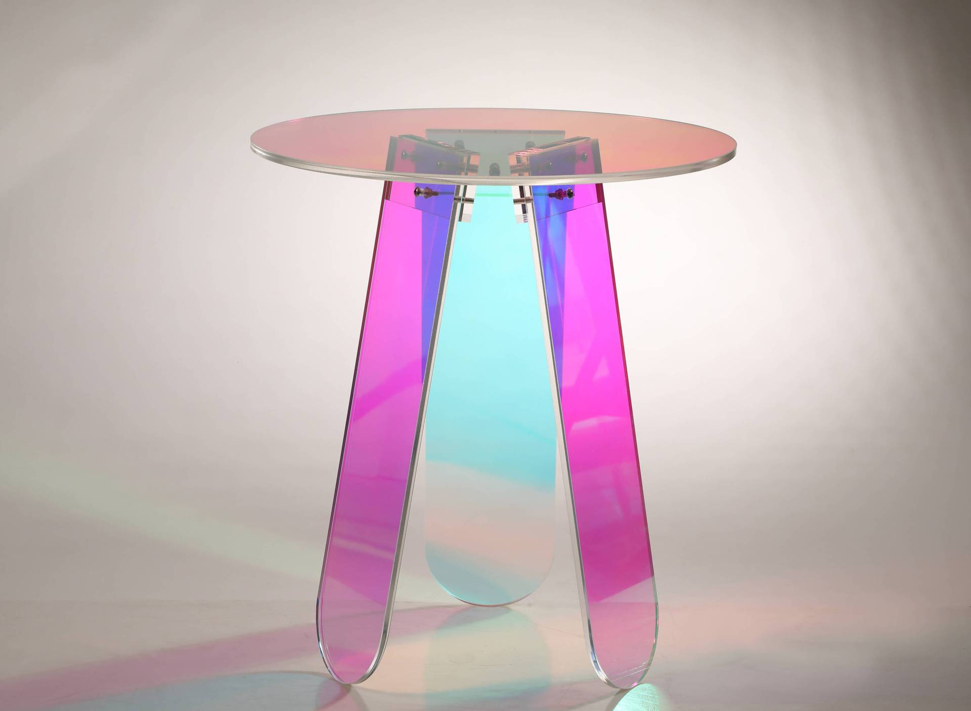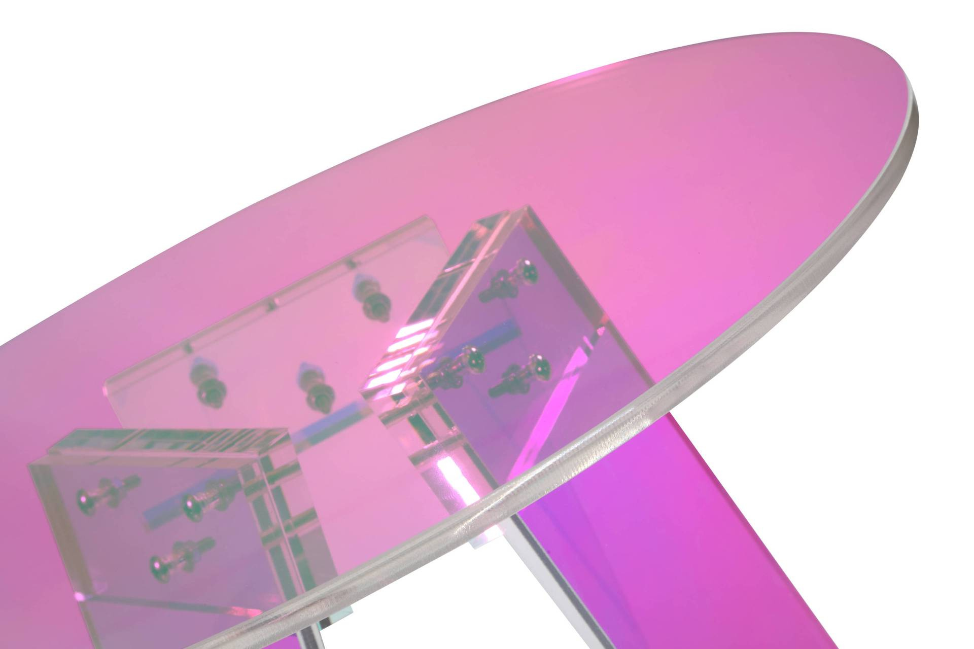 Oryginalny stolik zrobiony z przezroczystego akrylu. W zależności od padania światła widoczne są różne efekty kolorystyczne. Minimalistyczny kształt i lekka konstrukcja sprawią, iż stolik można dopasować do każdego wnętrza.