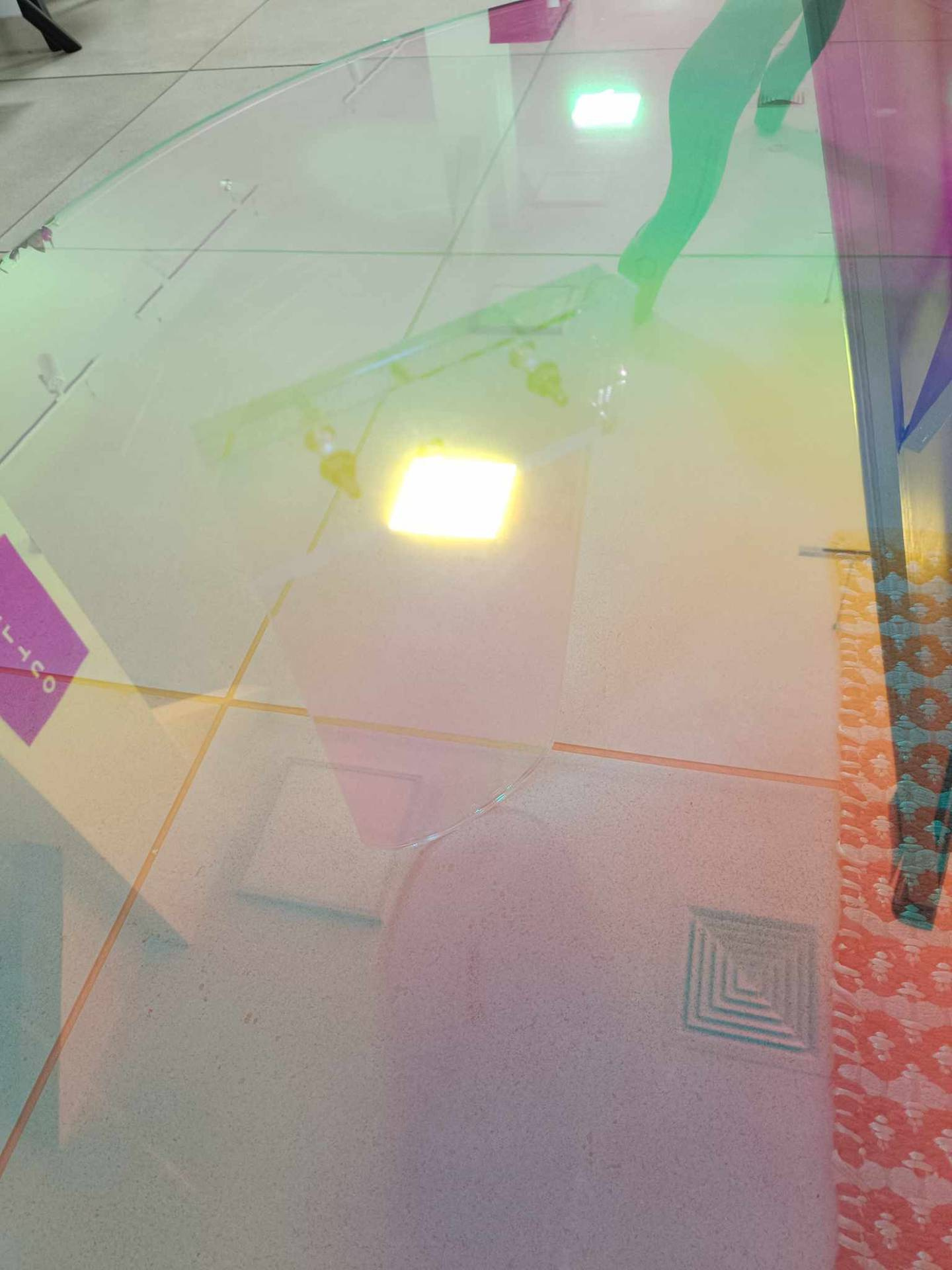 • Stolik wykonany z przezroczystego akrylu. W zależności od padania światła widoczne są różne efekty kolorystyczne.