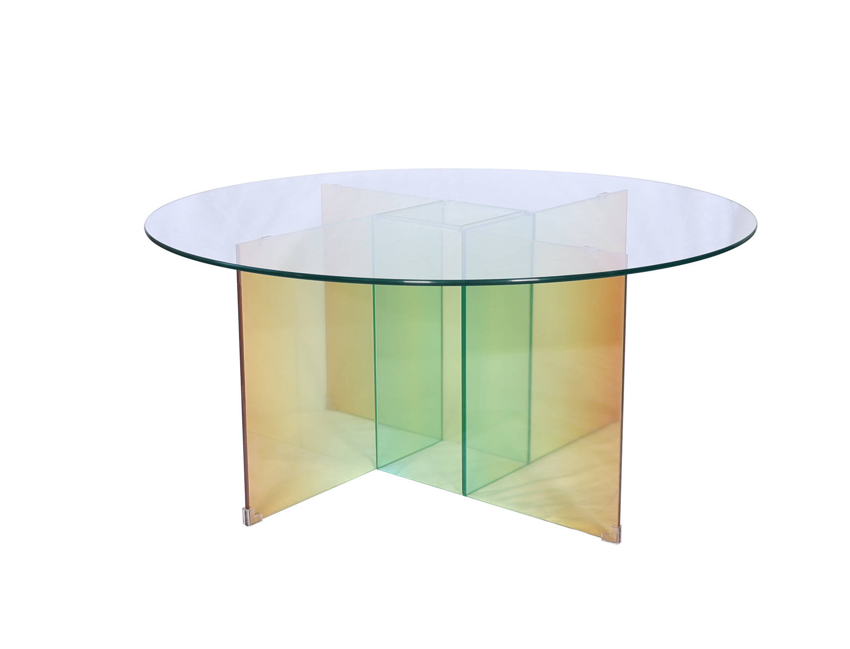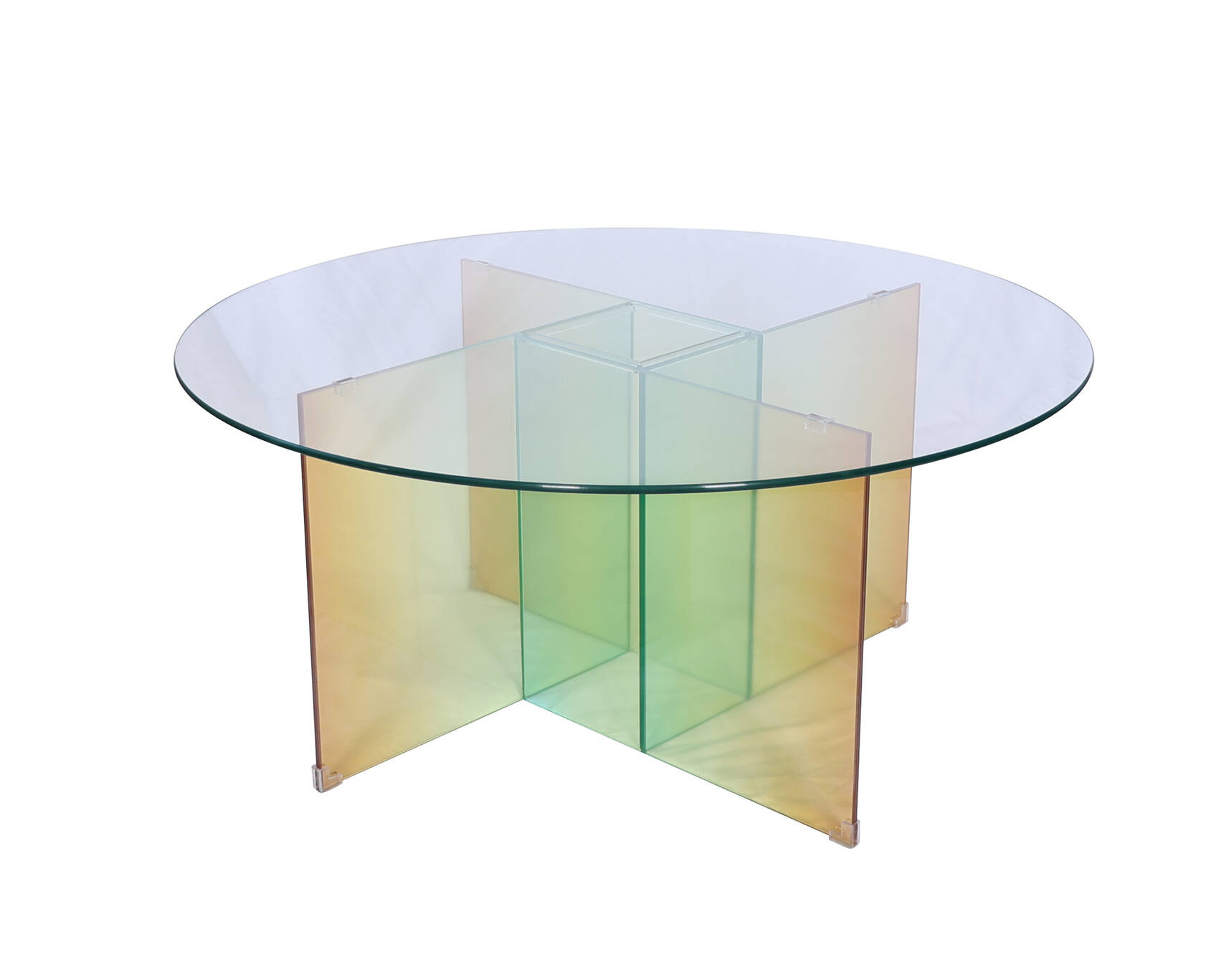 - Nowoczesny stolik wykonany z przezroczystego, opalizującego szkła. W zależności od padania światła można zaobserwować różne efekty kolorystyczne. Prosta forma i eleganckie wykończenie sprawią, iż stolik dopasuje się do większości wnętrz.