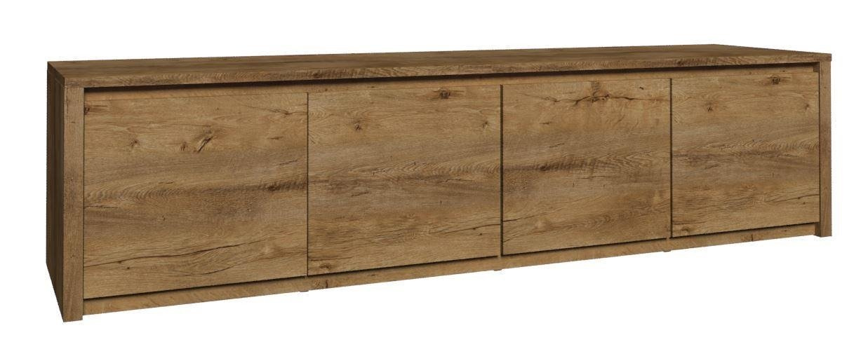 • Komoda czterodrzwiowa o szerokości 170 cm z czterema półkami wykonana z odpornej na uszkodzenia płyty laminowanej w kolorze dąb lefkas.