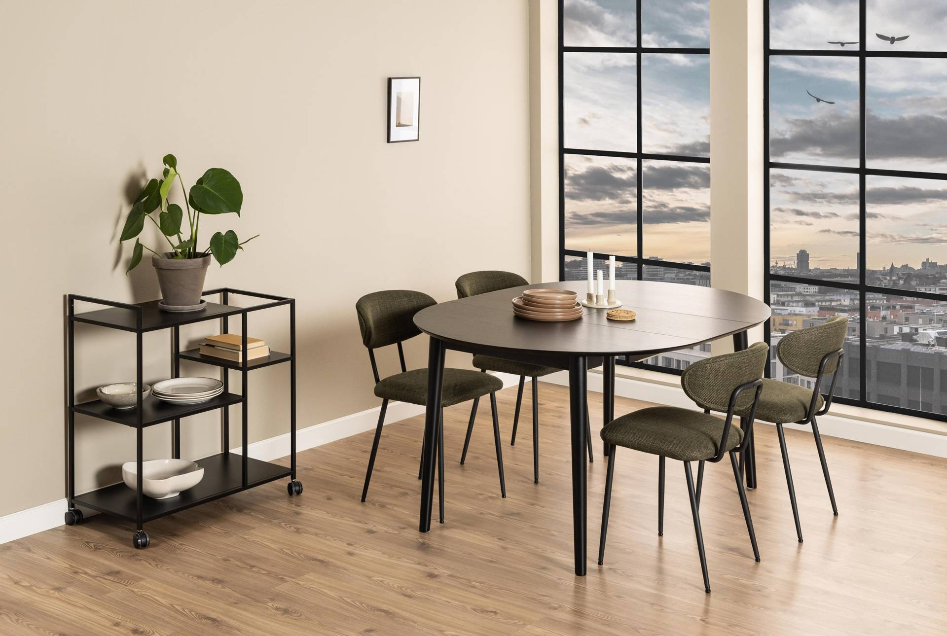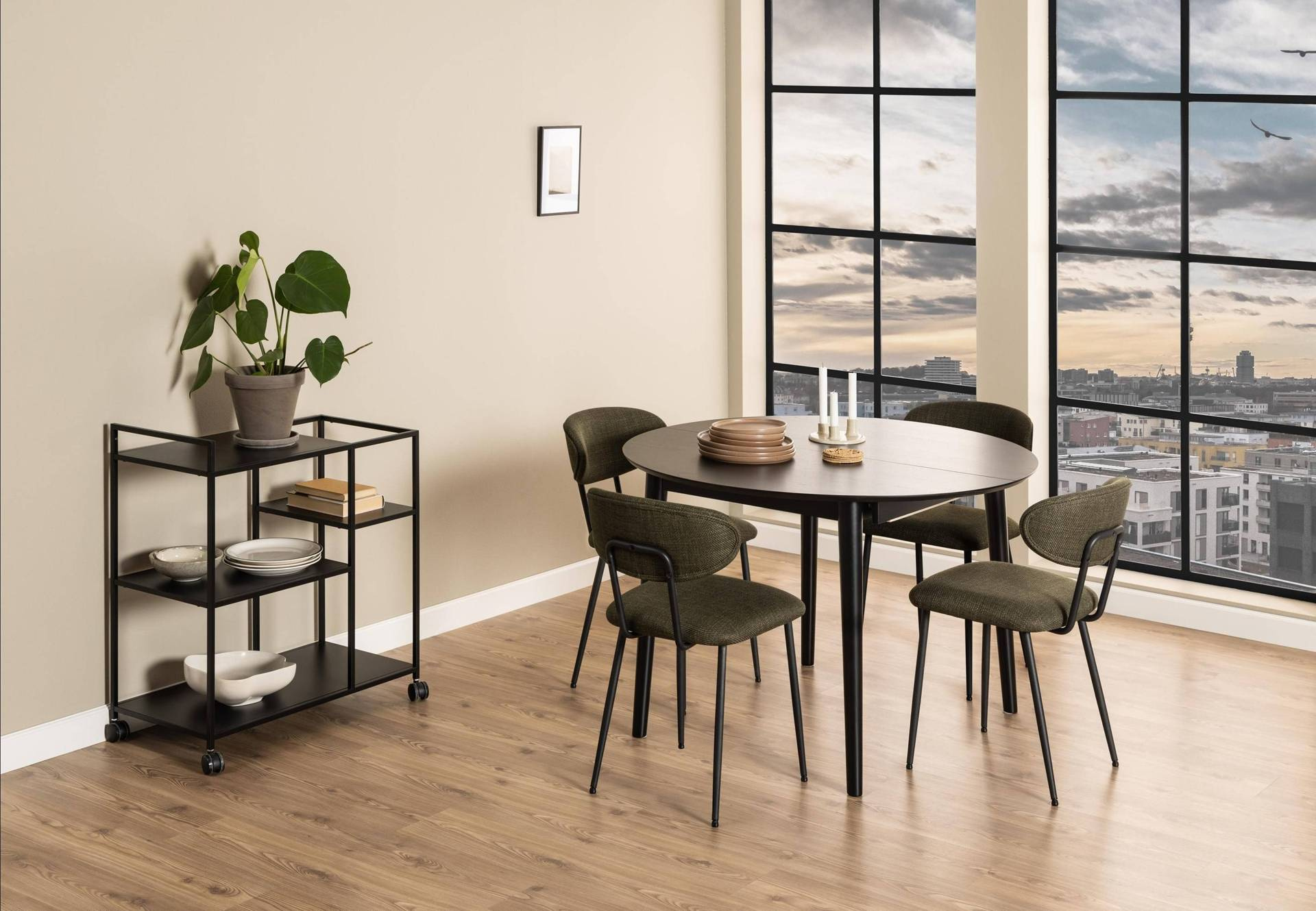 - Czarny stół okrągły Montreux o średnicy od 115 do 154 cm to eleganckie i funkcjonalne rozwiązanie do jadalni lub salonu. Solidna konstrukcja i nowoczesny design dodają pomieszczeniu wyjątkowego charakteru.