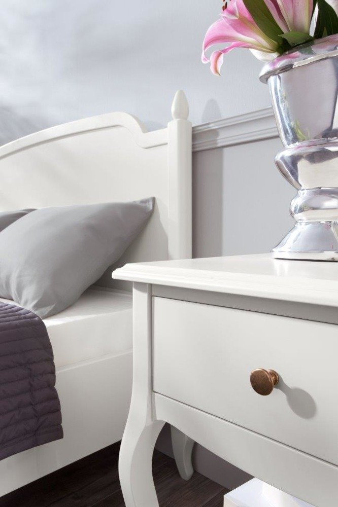 Kolekcja Nancy to wymarzona propozycja do Twojego domu, która wprowadzi w Twoje wnętrze subtelny klimat. Jasna, przytulna sypialnia ze szczyptą francuskiej słodyczy, stworzy wyjątkową przestrzeń w romantycznym stylu. Miękkie linie, modelowane nóżki z litego drewna brzozowego, uzupełnione eleganckimi detalami tworzą doskonale wykończoną kompozycję. Wysokie standardy jakości oraz staranny proces produkcji - zlokalizowany całkowicie w Polsce, zapewniają perfekcyjne wykonanie i gwarancję solidności. Śnij w niej piękne sny.