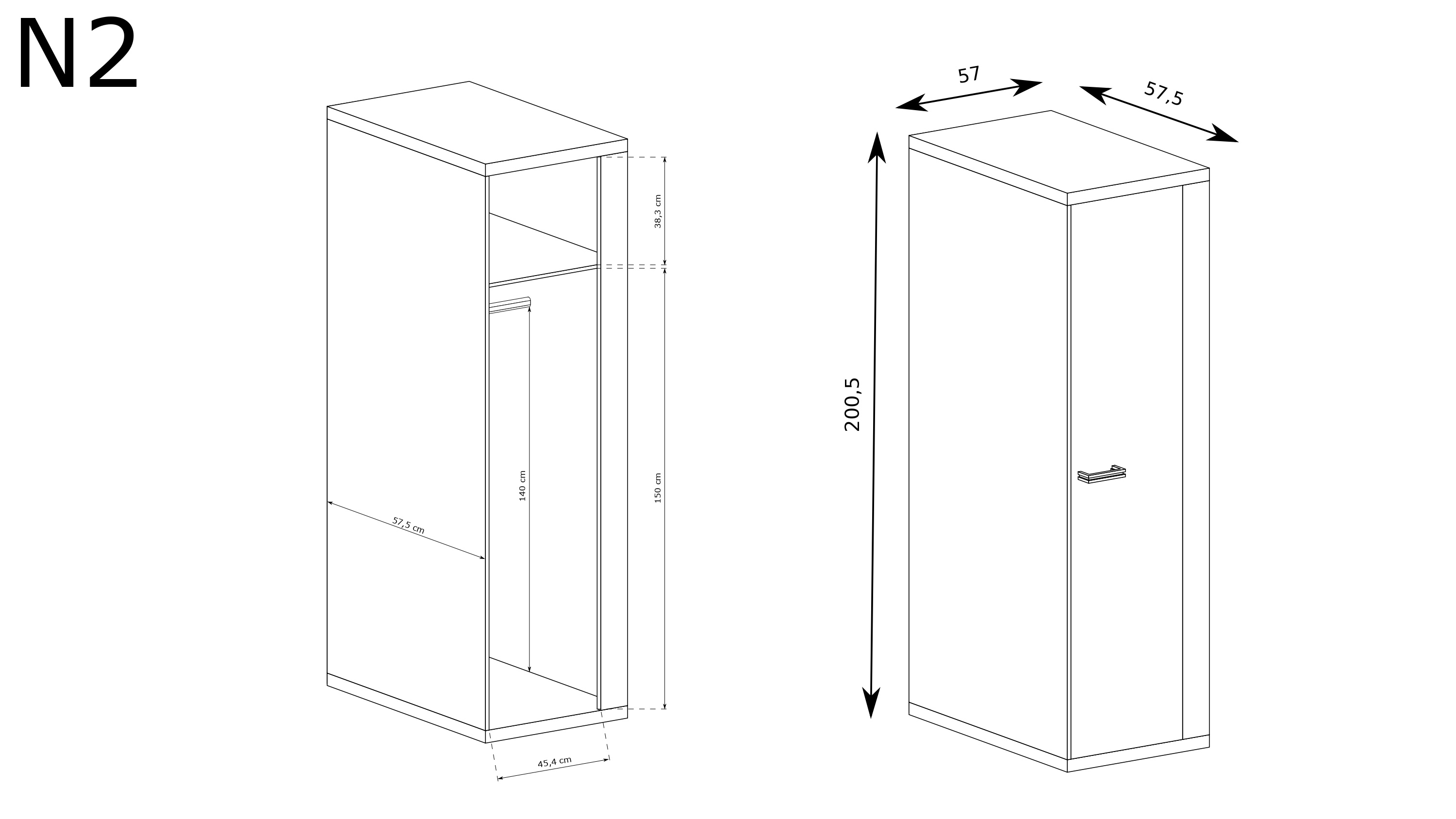- Szafa NATURAL-2 to elegancki mebel, który łączy funkcjonalność z nowoczesnym stylem. Wykonana z wytrzymałej płyty laminowanej, z cichym domykiem i metalowym uchwytem, oferuje jedną półkę i drążek na ubrania. Idealna do optymalizacji przestrzeni.