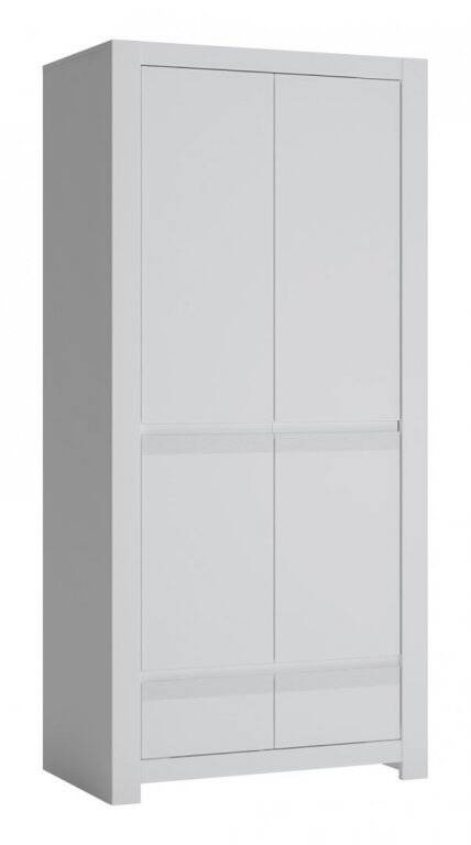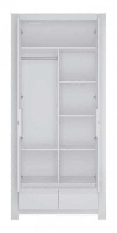 Szafa z kolekcji Novi odznacza się wyjątkowym, bezuchwytowym systemem, co sprawia, że jej bryła wydaje się jednolita i bardzo elegancka. To doskonała propozycja zarówno do pokoju młodzieżowego, jak i do salonu, gdzie estetyka i minimalizm są szczególnie cenione. Wnętrze szafy zostało zaprojektowane w sposób maksymalnie funkcjonalny: po lewej stronie znajduje się praktyczny drążek do powieszenia ubrań, natomiast po prawej - półki idealne do segregacji ubrań czy innych przedmiotów. Dodatkową przestrzeń do przechowywania zapewniają dwie przestronne szuflady, które będą niezastąpione przy organizacji bielizny czy drobniejszych akcesoriów.
