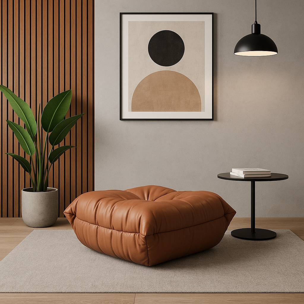 Odkryj nowoczesny podnóżek Nua N22-21 od Livinhill! Wykonany z ekoskóry w karmelowym brązie, z eleganckim przeszyciem. Idealny jako uzupełnienie Twojego salonu, zapewnia komfort i styl. Zmontowany, gotowy do użycia, wniesie harmonię do każdego wnętrza!