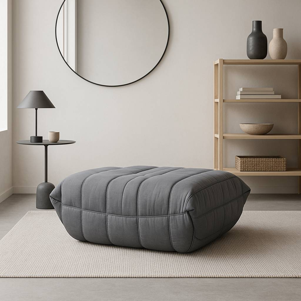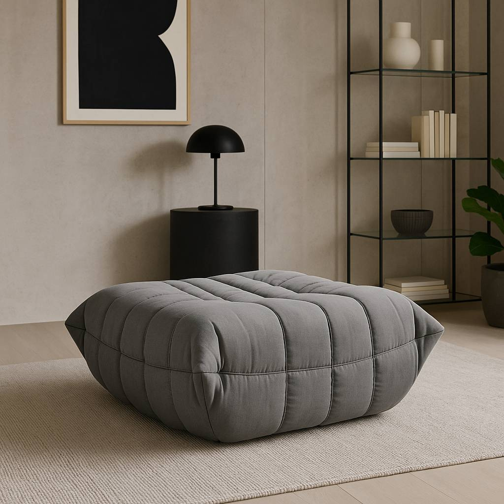Podnóżek Nua N22-21 od marki Livinhill to doskonałe połączenie elegancji i funkcjonalności, które z pewnością wzbogaci każde wnętrze. Wykonany z aksamitnej bawełny, ten nowoczesny puf wyróżnia się nie tylko estetycznym designem, ale również przyjemnym w dotyku materiałem. Jego stalowy szary kolor nadaje mu uniwersalny charakter, który idealnie wkomponuje się w zarówno nowoczesne, jak i klasyczne aranżacje. Każdy detal, w tym poziome przeszycia oraz subtelna, pikowana linia w środkowej części, sprawiają, że podnóżek Nua staje się eleganckim elementem dekoracyjnym.