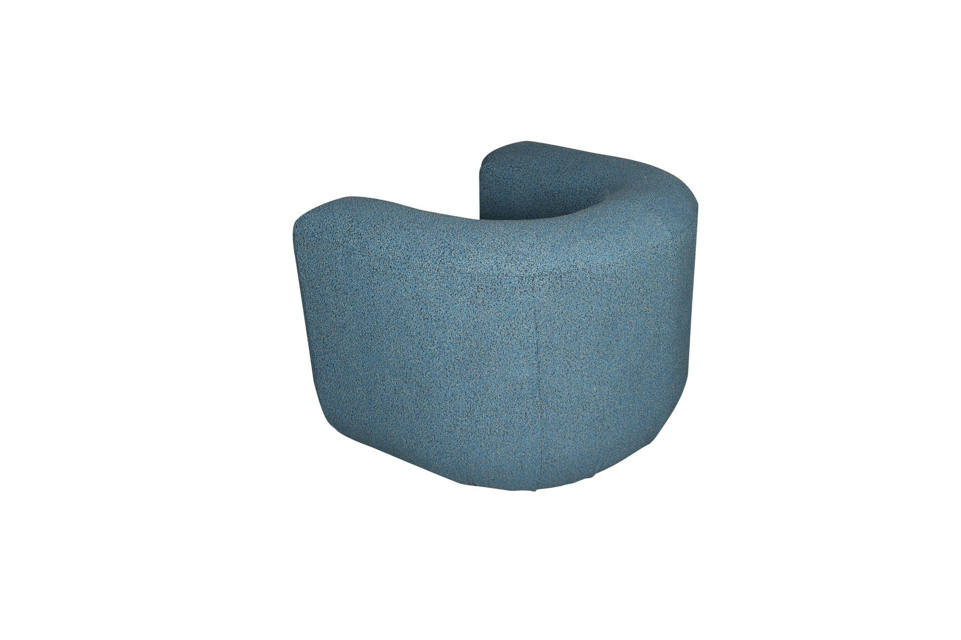 Nowoczesny fotel o konstrukcji bazującej na łukach, oparcie w kształcie litery C i front w kształcie litery W. Miękka szenilowa tkanina w kolorze niebieskim idealnie dopełnia niezwykłą formę fotela. To idealny dodatek do każdego wnętrza.