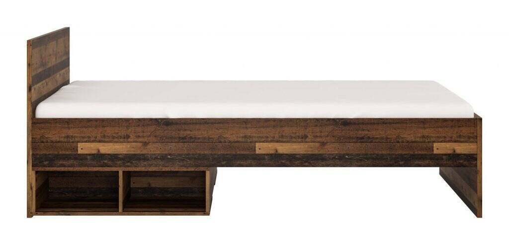 Łóżko młodzieżowe Nubi NUBZ01 o szerokości 125,3 cm w industrialnym stylu z praktycznymi wnękami. Old Style zestawione z funkcjonalnością: opcjonalna szuflada i możliwość montażu oświetlenia.