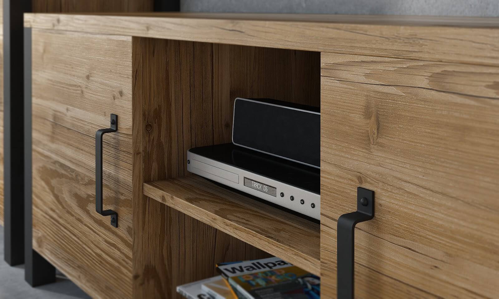 Olin WM Komoda RTV Mała 147 cm Świerk Appenzell / Czarny Mat