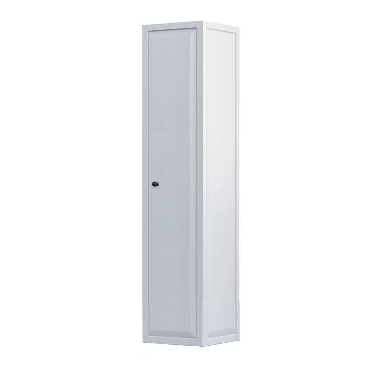 - Szafka wysoka boczna w białym macie z jednymi drzwiami w rozmiarze 35 cm.
