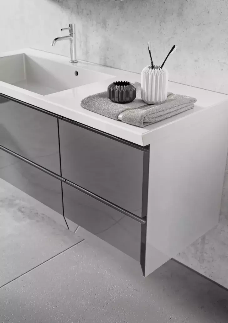 - Szafka pod umywalkę 40 cm w kolorze białym w połysku z dwiema szufladami