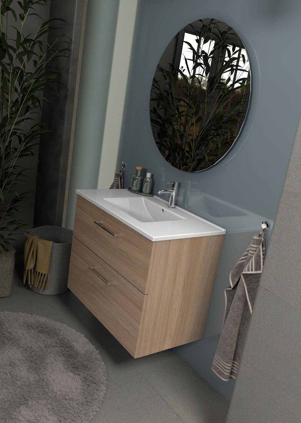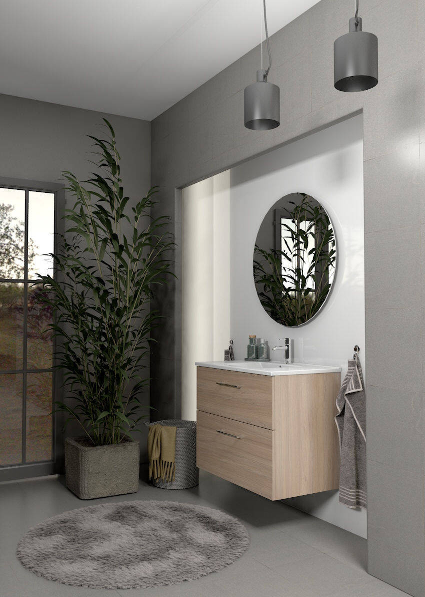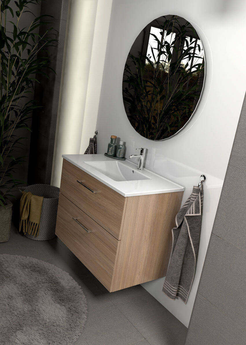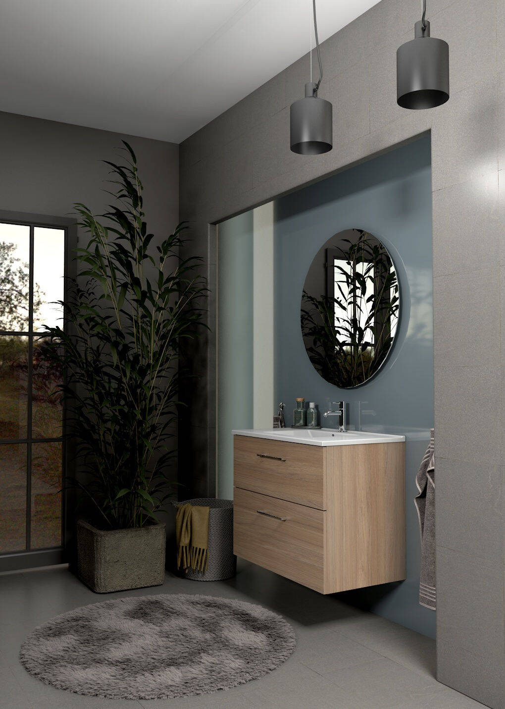 - Szafka z umywalką 80 cm w kolorze Dąb Jasny Urban.