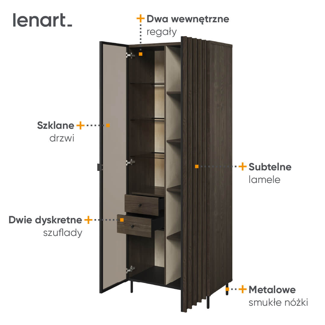 Pragniesz wprowadzić do swojego wnętrza nutę nowoczesności jednocześnie zachowując elegancję i ponadczasowy styl? Odkryj witrynę PIEMONTE PE-02, która swoją unikalną estetyką i funkcjonalnością przemieni każdy salon w przestrzeń pełną charakteru i klasy. Ta witryna, w odcieniach jesionu portland połączonych z barwą blacksmith, to mieszanka nowoczesnej formy z nutą industrialnej surowości, której nie sposób nie docenić.