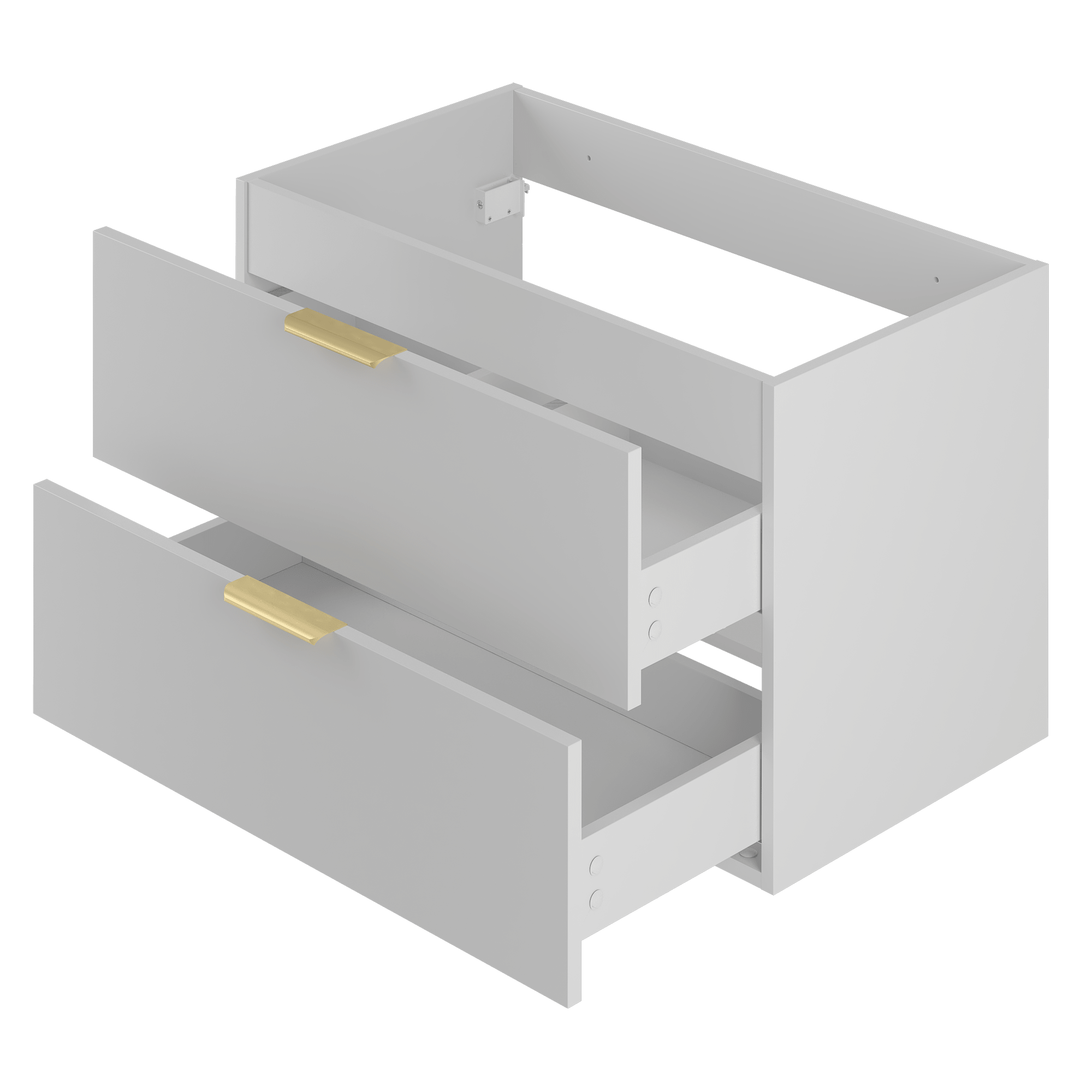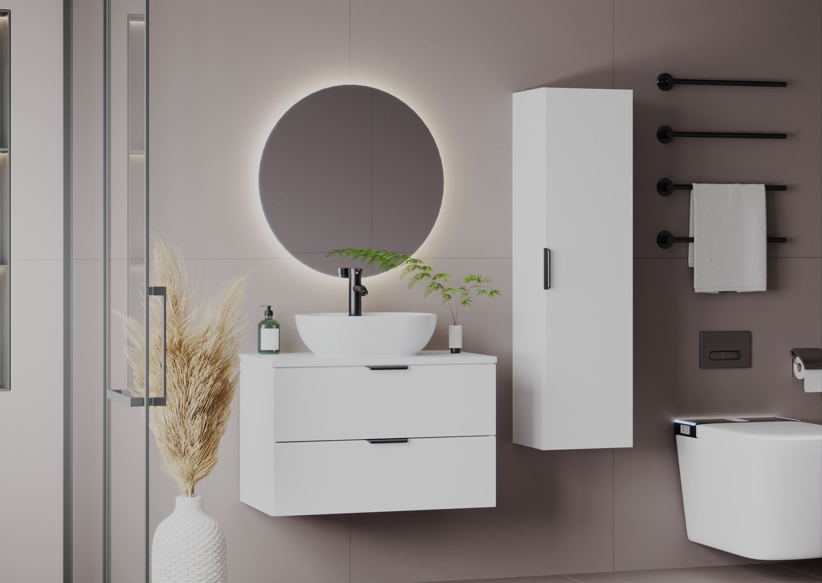 Szafka pod umywalkę PILE-01 80 cm od Megstyl to elegancki dodatek do każdej łazienki. Wykonana z matowej płyty MDF i laminowanej, gwarantuje trwałość. Czarne uchwyty z aluminium dodają nowoczesnego charakteru. Idealna do samodzielnego montażu i zawieszeni