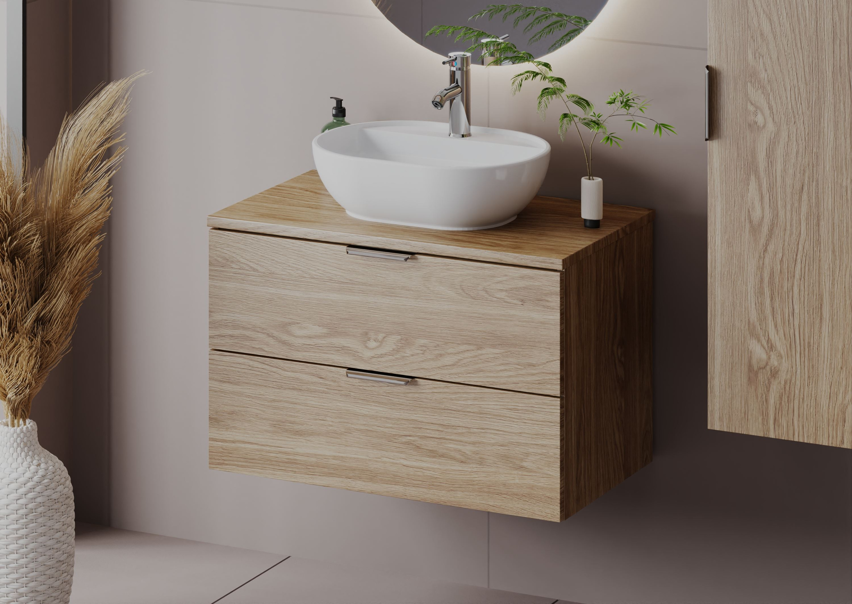 Odwzorowując harmonię natury, **Szafka Pod Umywalkę 2S** od renomowanej marki **Megstyl** to elegancki dodatek do każdej łazienki. Wykonana z **dębu olejowanego**, jej matowe wykończenie nadaje wyjątkowego charakteru, wpisując się w najnowsze trendy w aranżacji wnętrz. Dzięki wyjątkowej szerokości 80 cm, szafka staje się centralnym punktem łazienkowej przestrzeni, łącząc w sobie styl oraz funkcjonalność.