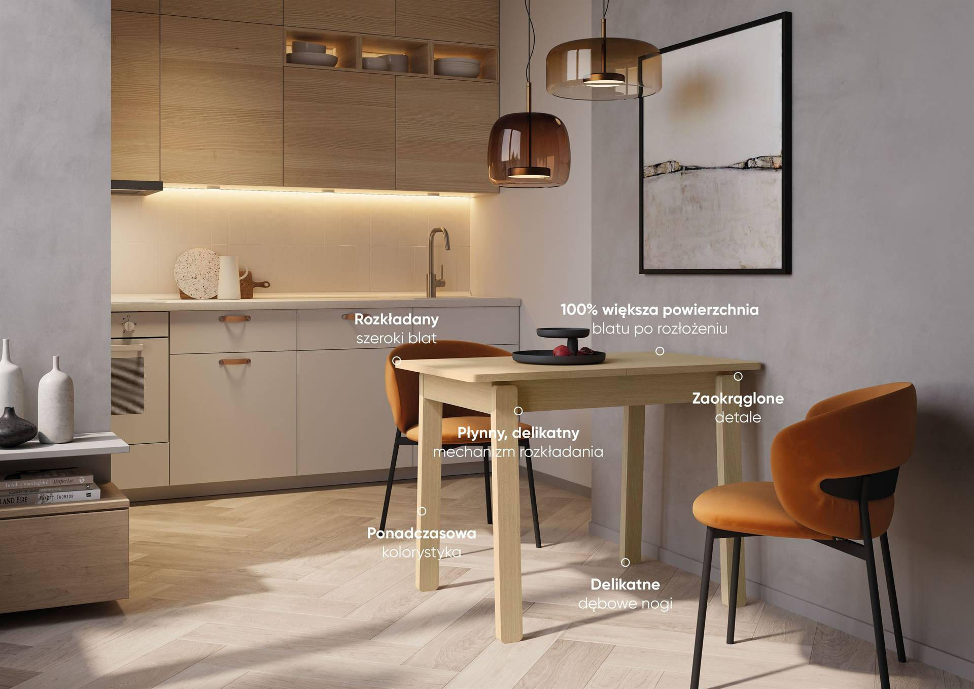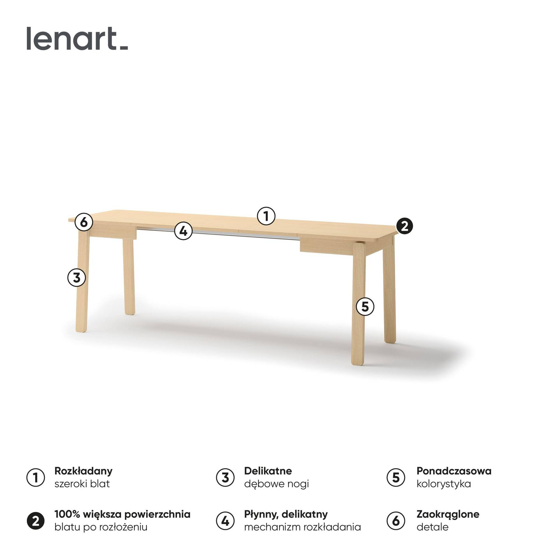Wszechstronność tego stołu jest jego największą zaletą. Na co dzień możesz cieszyć się jego kompaktowymi wymiarami, które sprawią, że idealnie wpasuje się w mniejsze przestrzenie. Jednak gdy przychodzi czas na większe wydarzenia, rozkładany mechanizm pozwala na szybkie zwiększenie jego długości od 104 do 224 cm. Dzięki temu z łatwością pomieścisz wszystkich swoich gości, tworząc wygodną przestrzeń do spożywania posiłków i wspólnego spędzania czasu.
