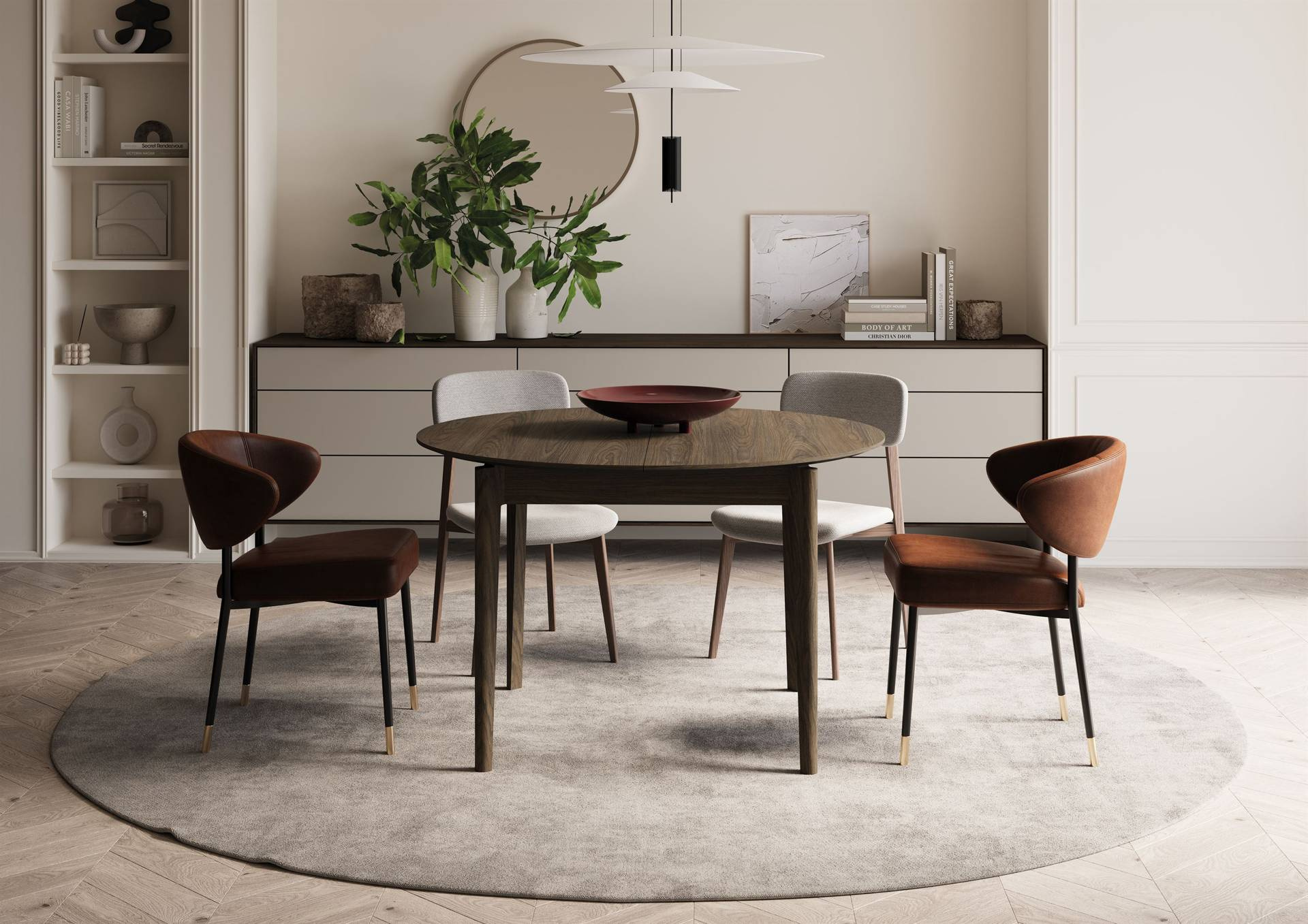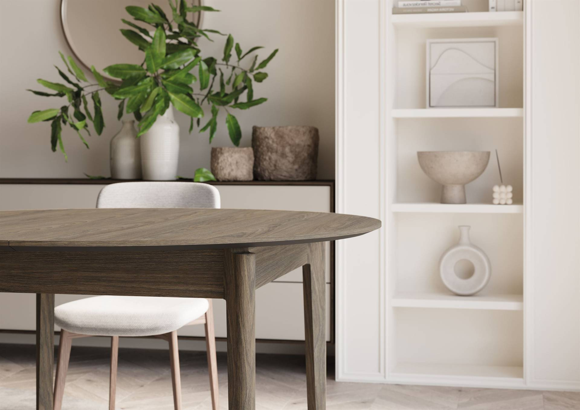 Odkryj stół rozkładany PLOT PT-04, wykonany z ciemnego dębu. Jego okrągły design sprzyja wspólnym spotkaniom, a funkcja rozkładania pozwala na zwiększenie powierzchni. Idealny na rodzinne uroczystości! Przemień jadalnię w miejsce pełne harmonii.