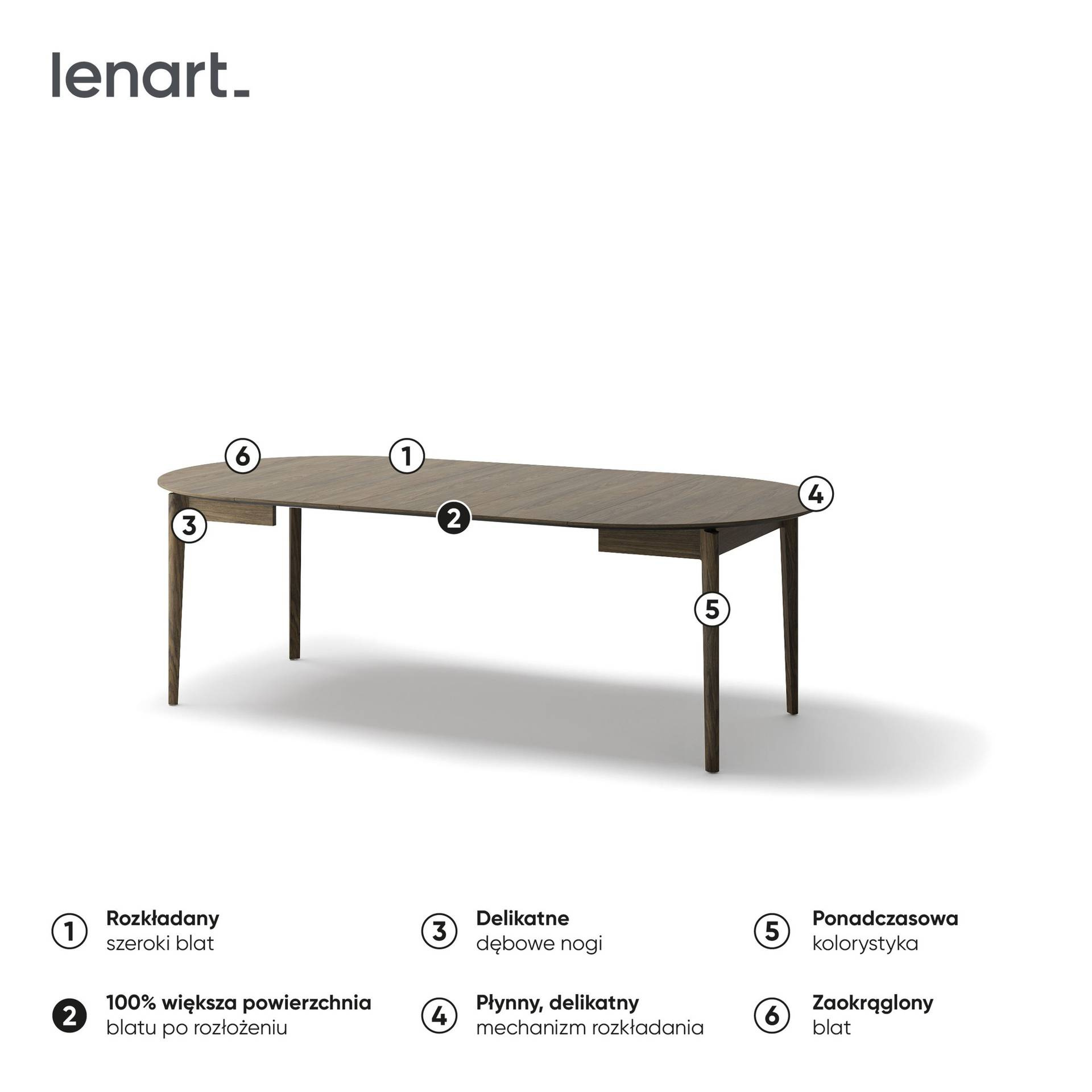 Odkryj elegancję i funkcjonalność w jednym z największych mebli w Twoim domu z rozszerzanym stołem PLOT PT-04. Wykonany z ciemnego dębu, łączy w sobie nowoczesny design z klasycznym wdziękiem, co czyni go idealnym dodatkiem do każdej jadalni. Jego owalny kształt promuje poczucie wspólnoty, a każdy przy stole ma wystarczająco miejsca, aby cieszyć się posiłkami w towarzystwie bliskich.