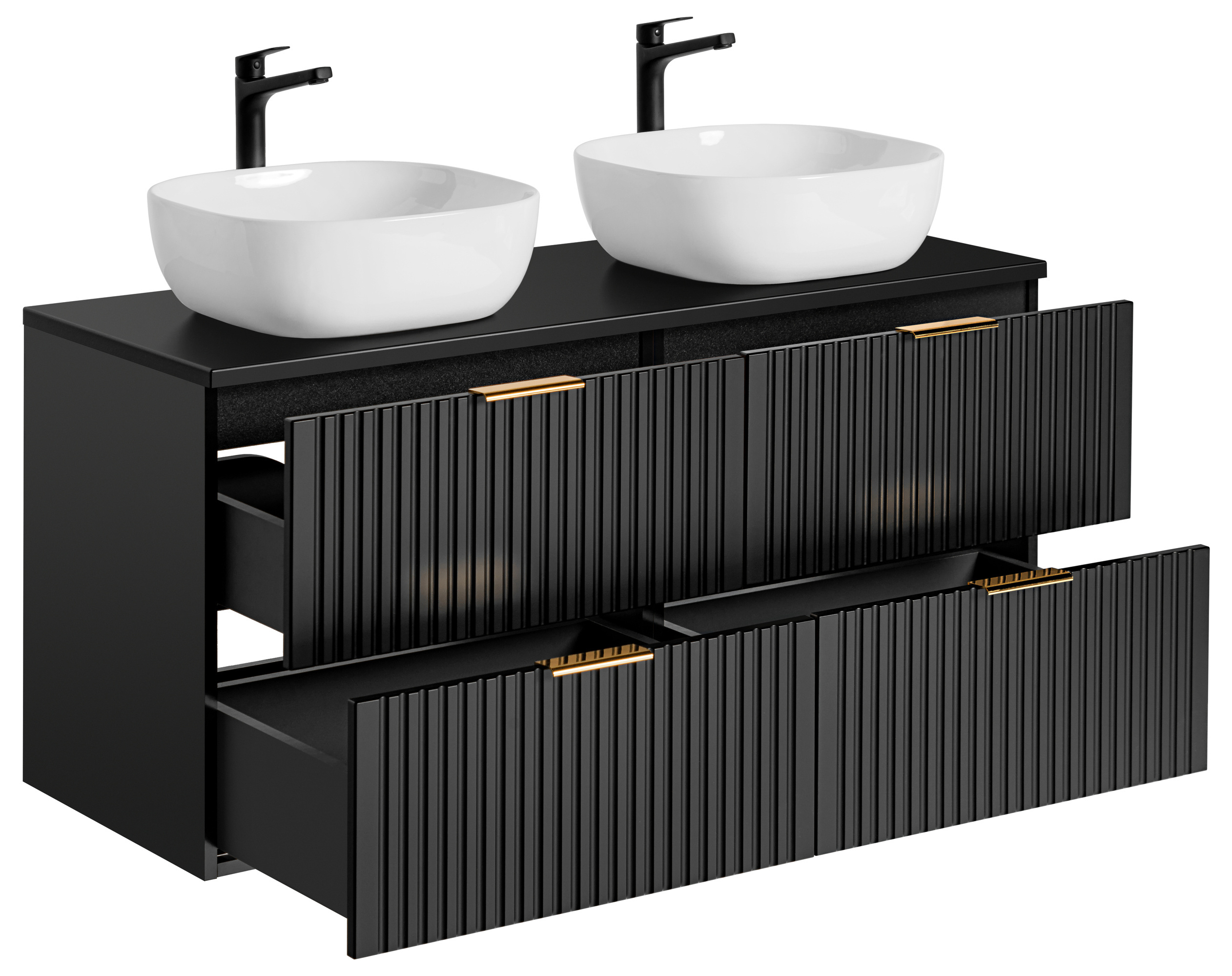 Podwójna Szafka 60 cm ADEL BLACK z Umywalką SMILE i Blatem 120 cm